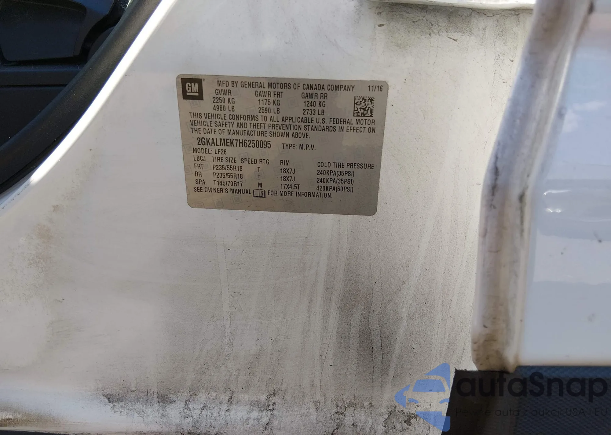 • VIN 2GKALMEK7H6250095