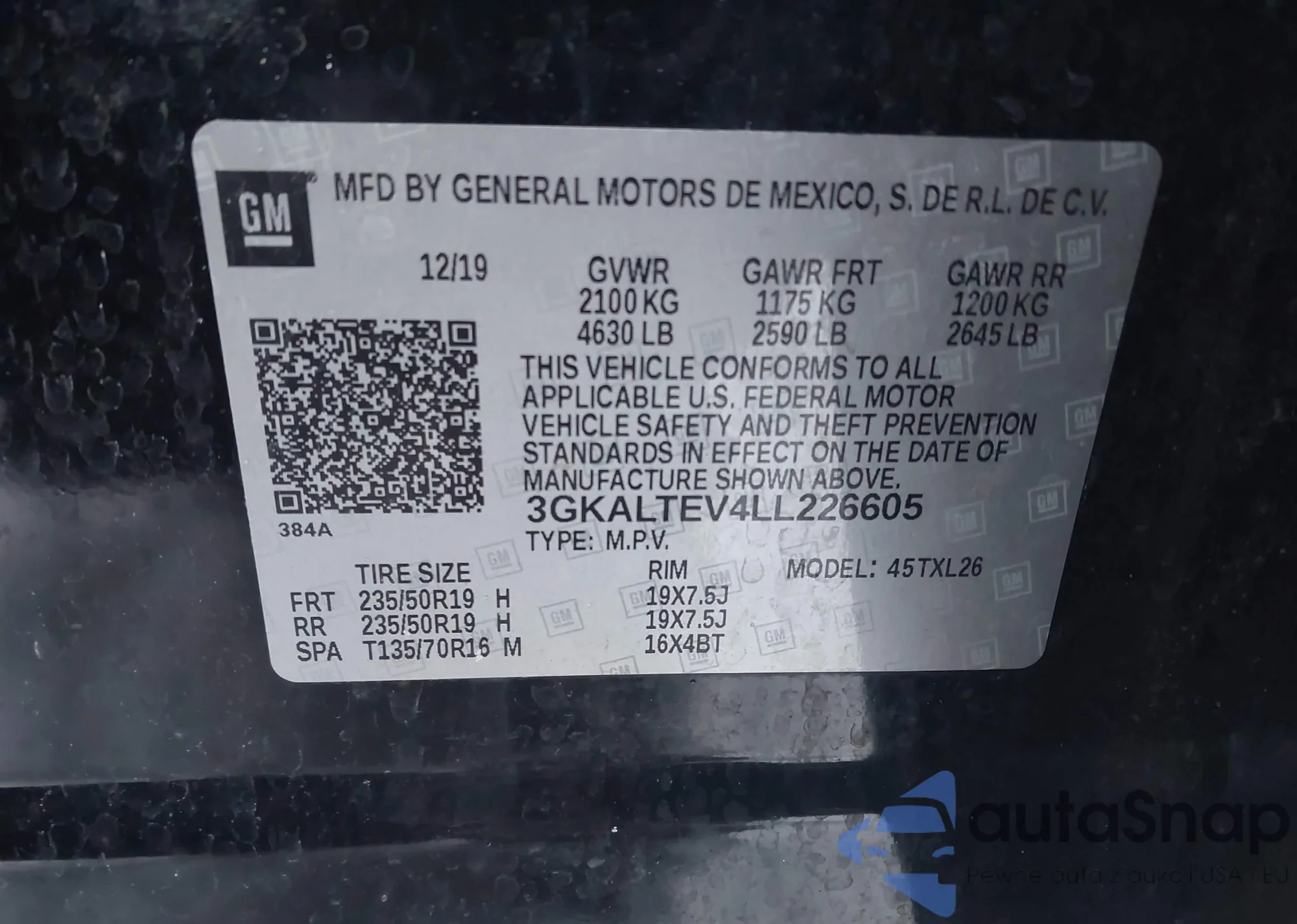 • VIN 3GKALTEV4LL226605