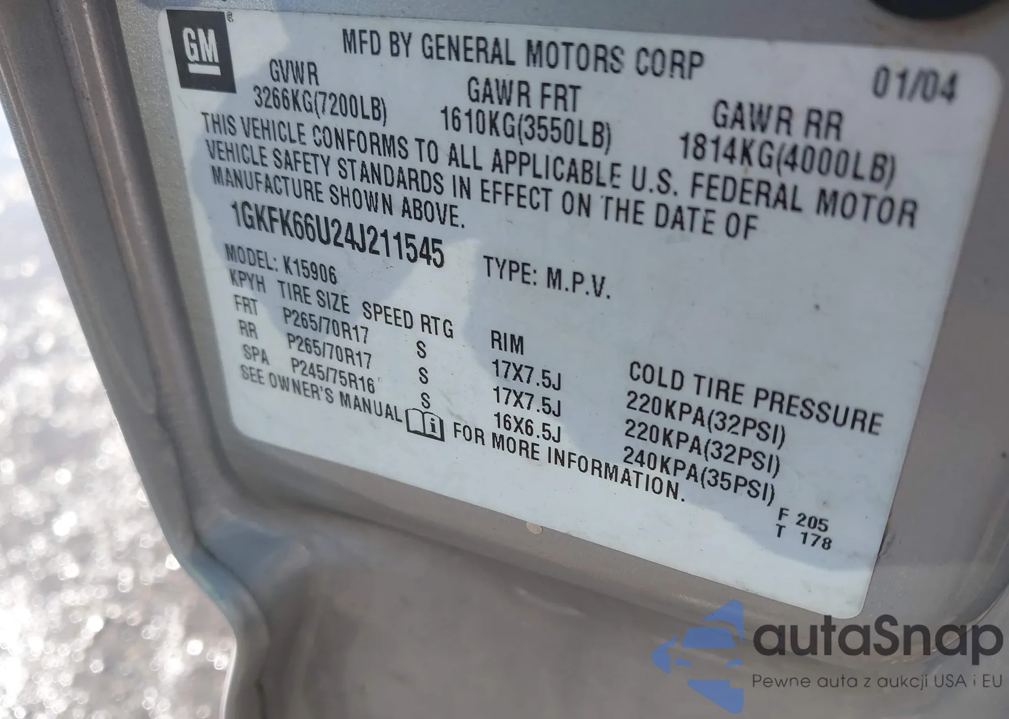 • VIN 1GKFK66U24J211545