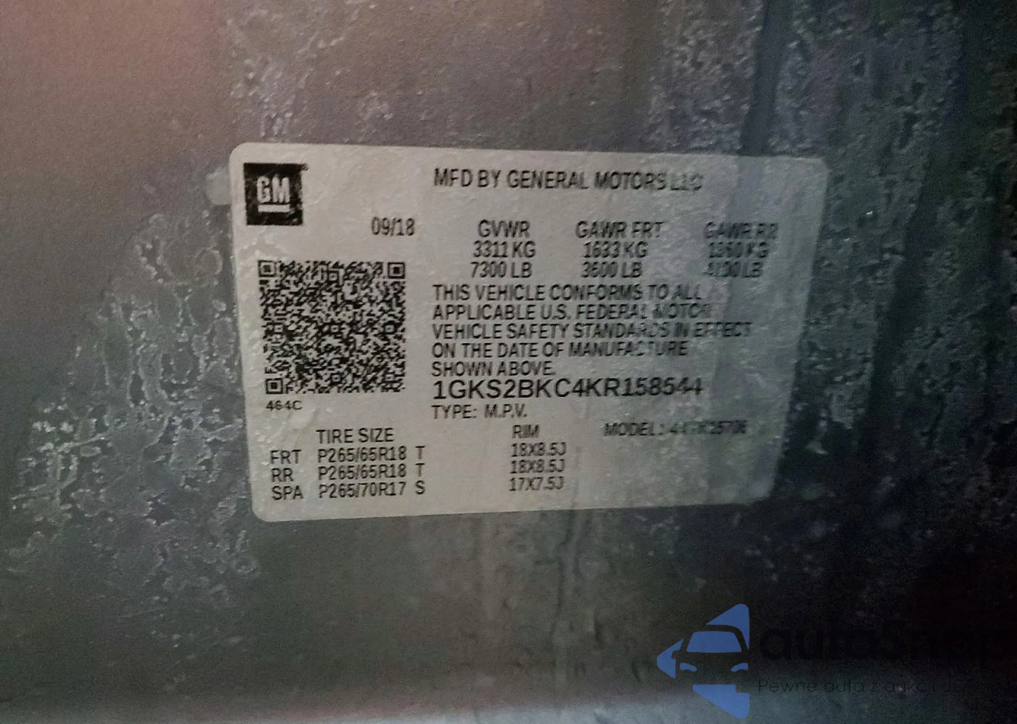 LOT: 76262935 VIN: 1GKS2CKJ3JR325897