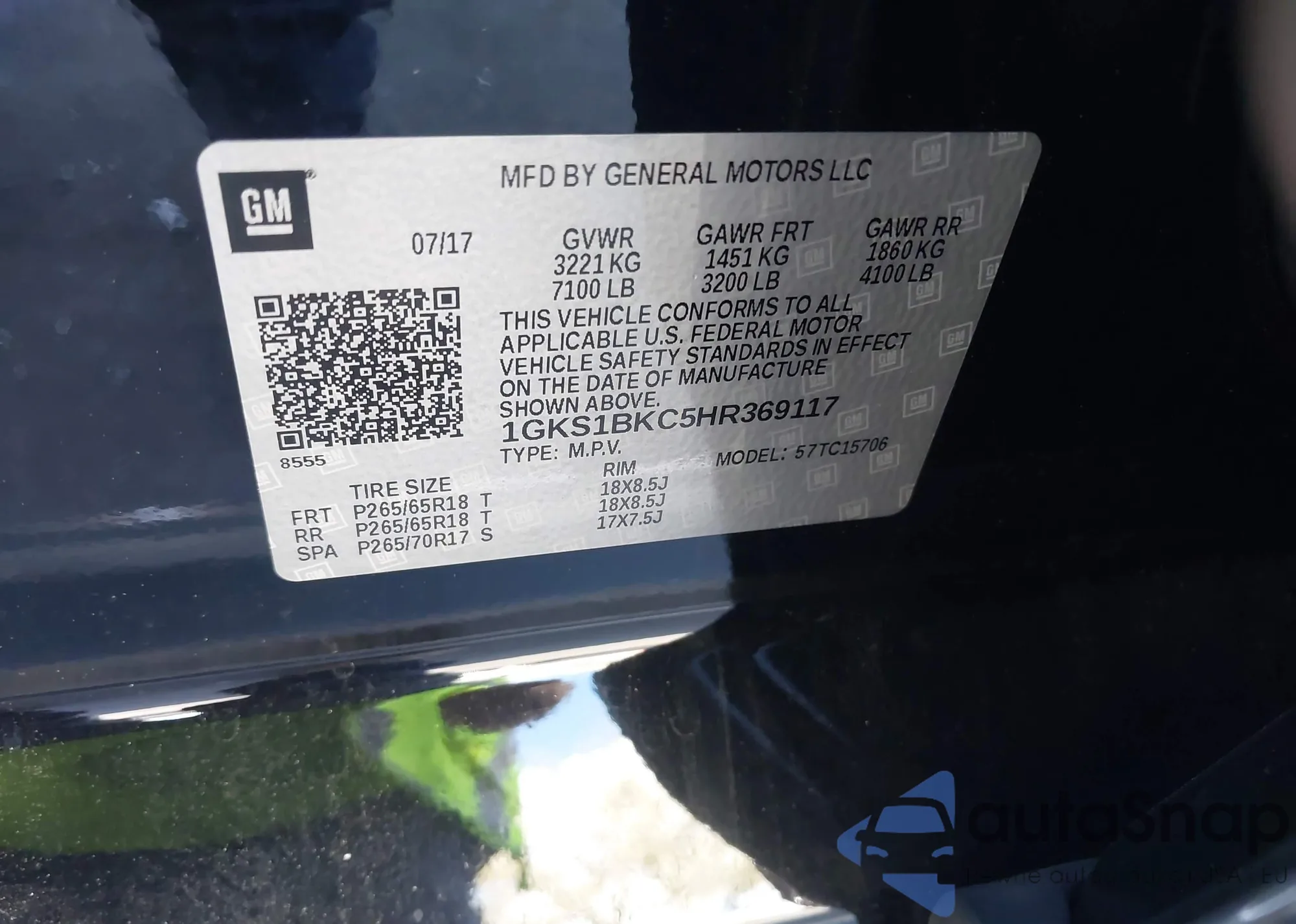 LOT: 44397966 VIN: 1GKS1CKJ8HR375160