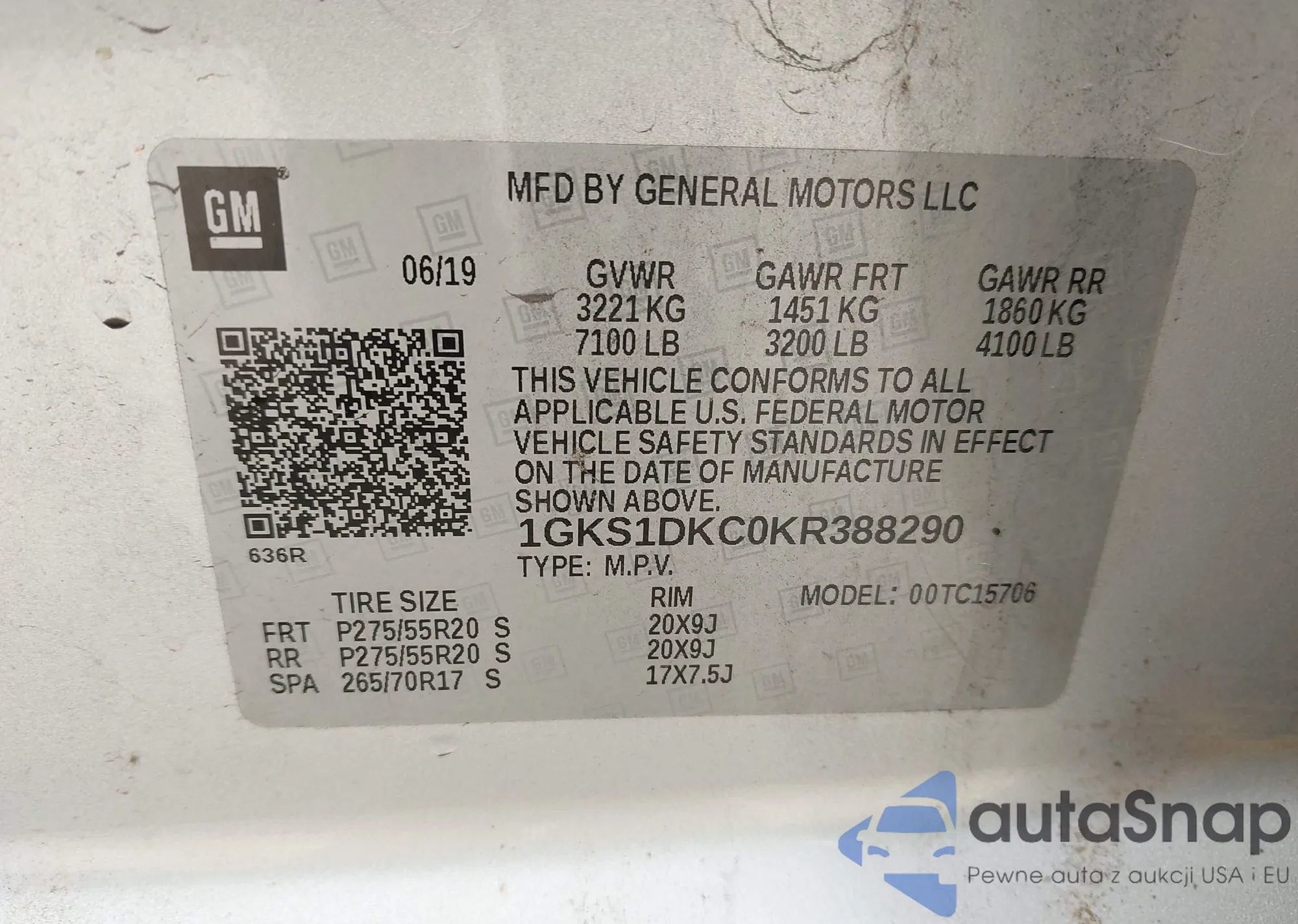 LOT: 44415043 VIN: 1GKS1DKC0KR388290