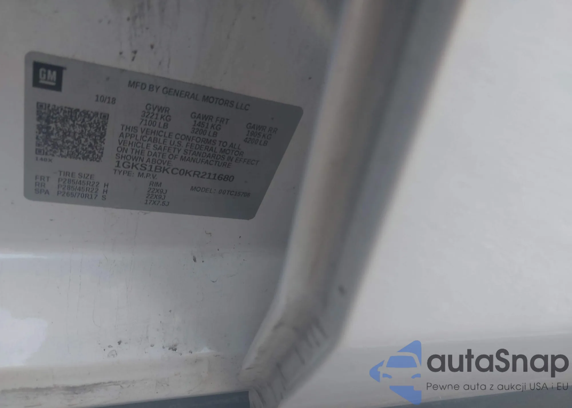 LOT: 44431040 VIN: 1GKS1BKC0KR211680