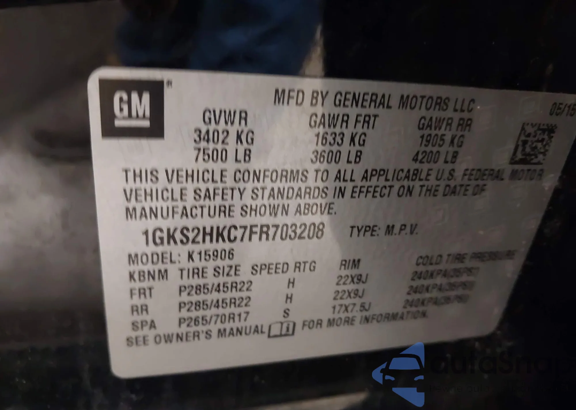 • VIN 1GKS2HKC7FR703208