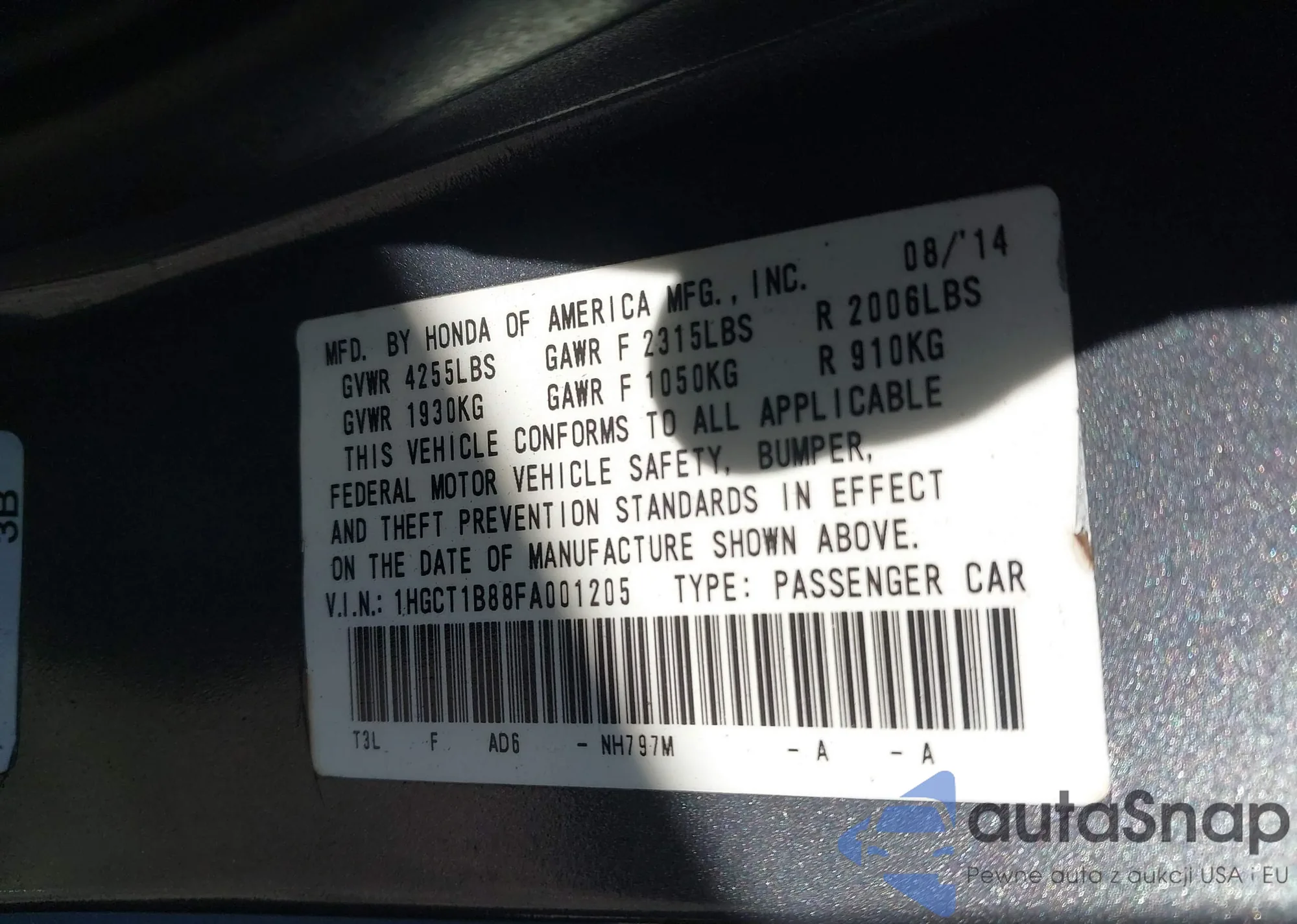 • VIN 1HGCT1B88FA001205