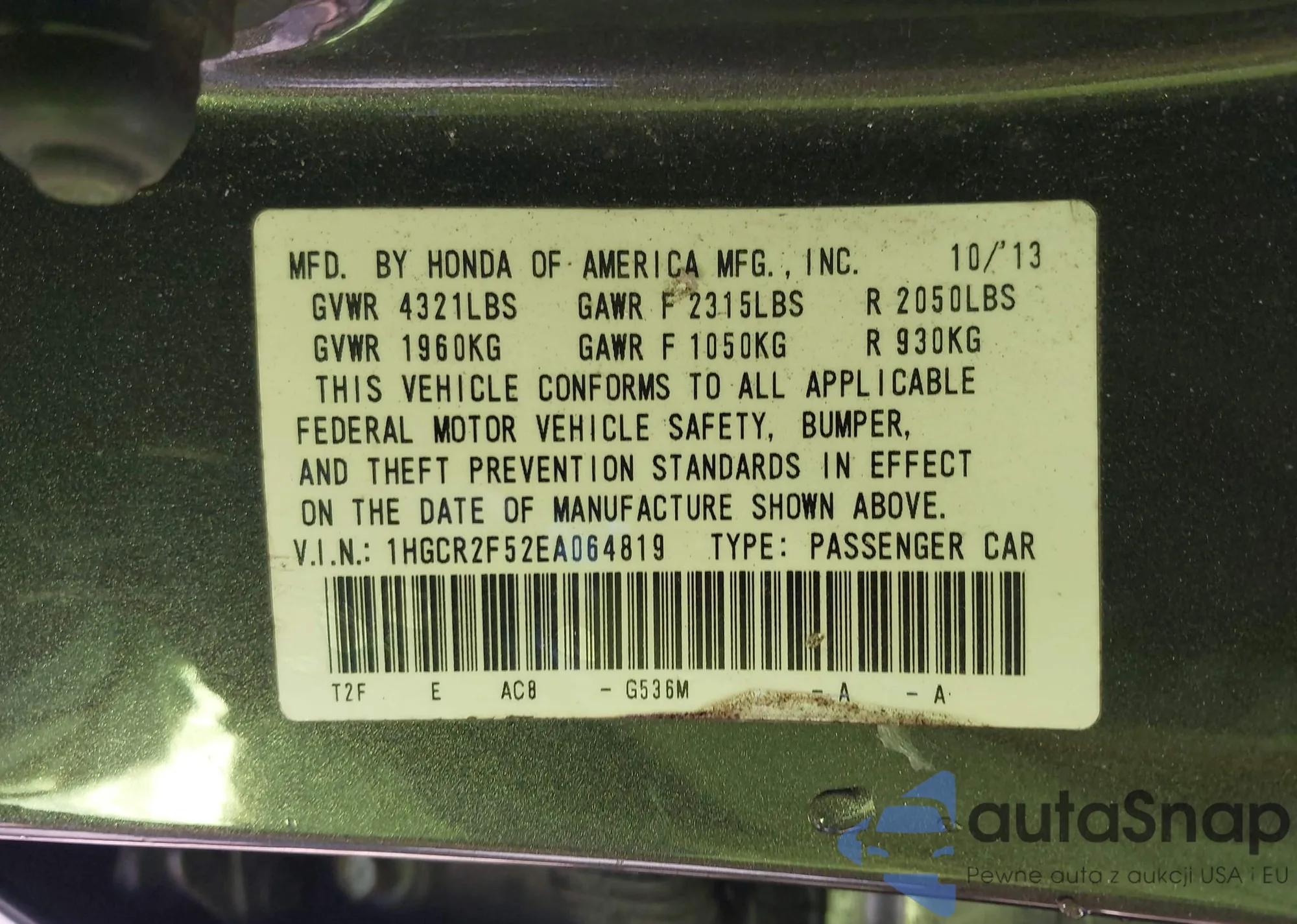 • VIN 1HGCR2F52EA064819