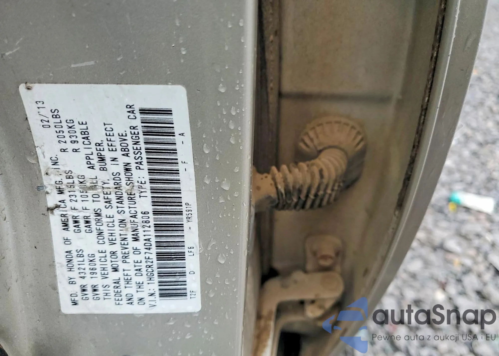 • VIN 1HGCR2F74DA112806