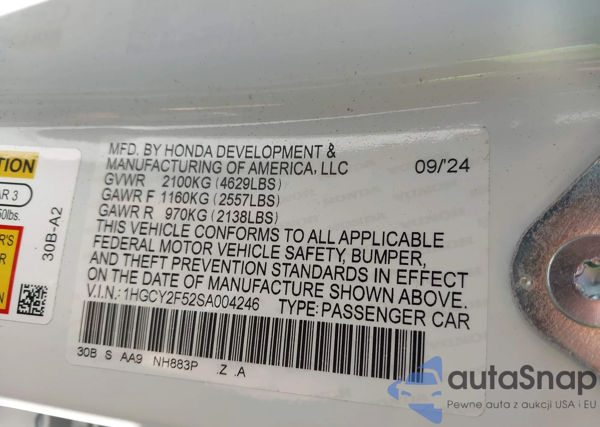 • VIN 1HGCY2F52SA004246