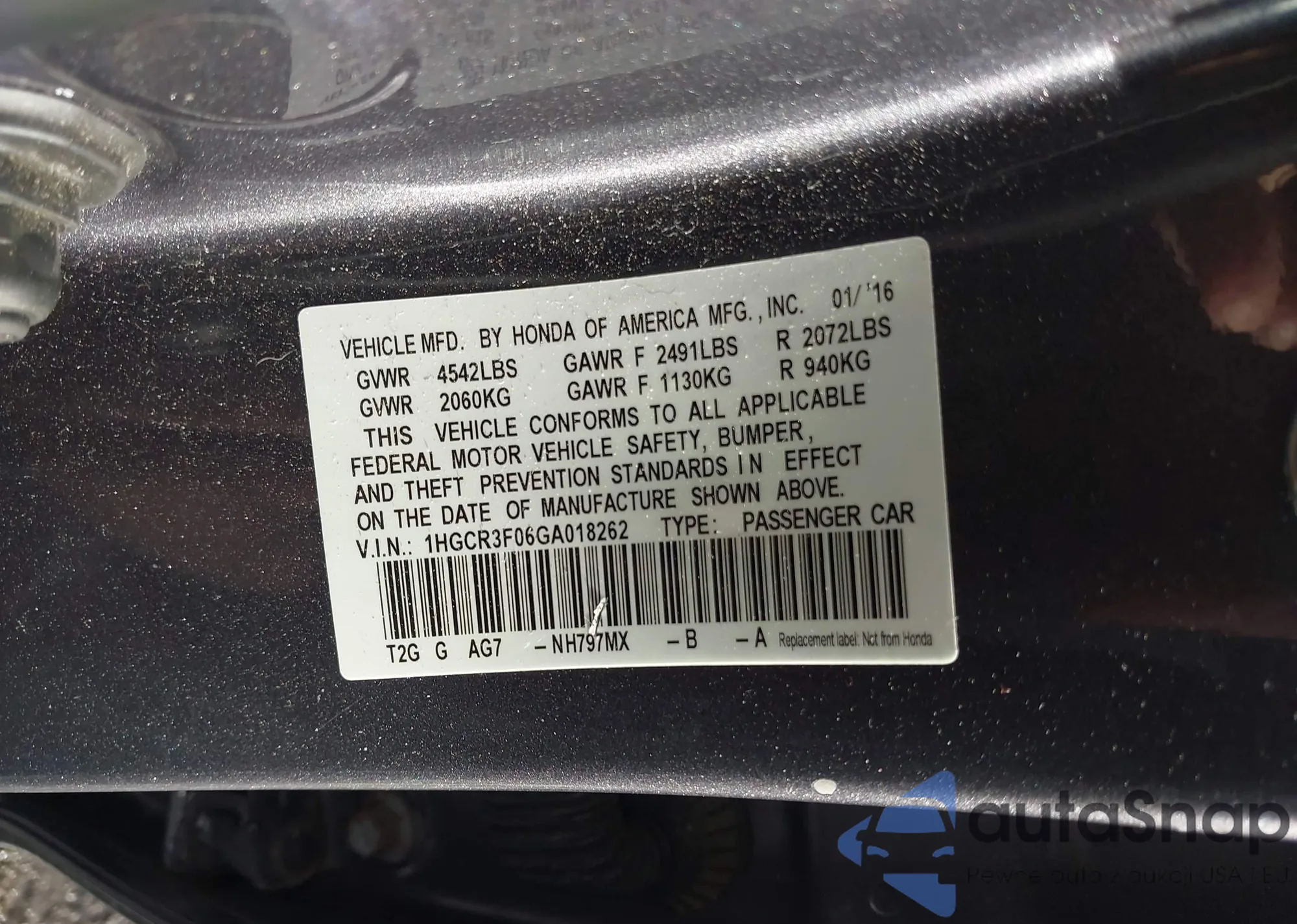 LOT: 44015573 VIN: 1HGCR3F06GA018262