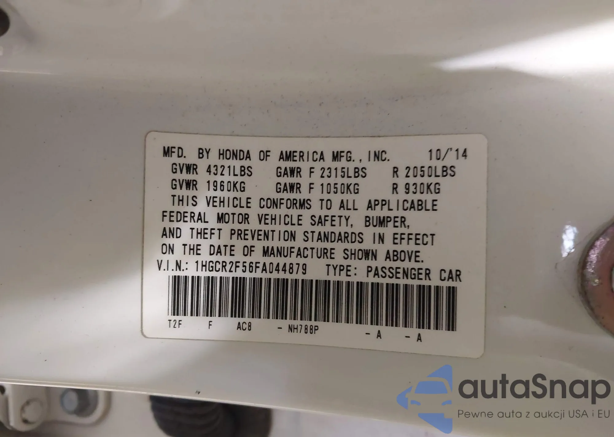 • VIN 1HGCR2F56FA044879