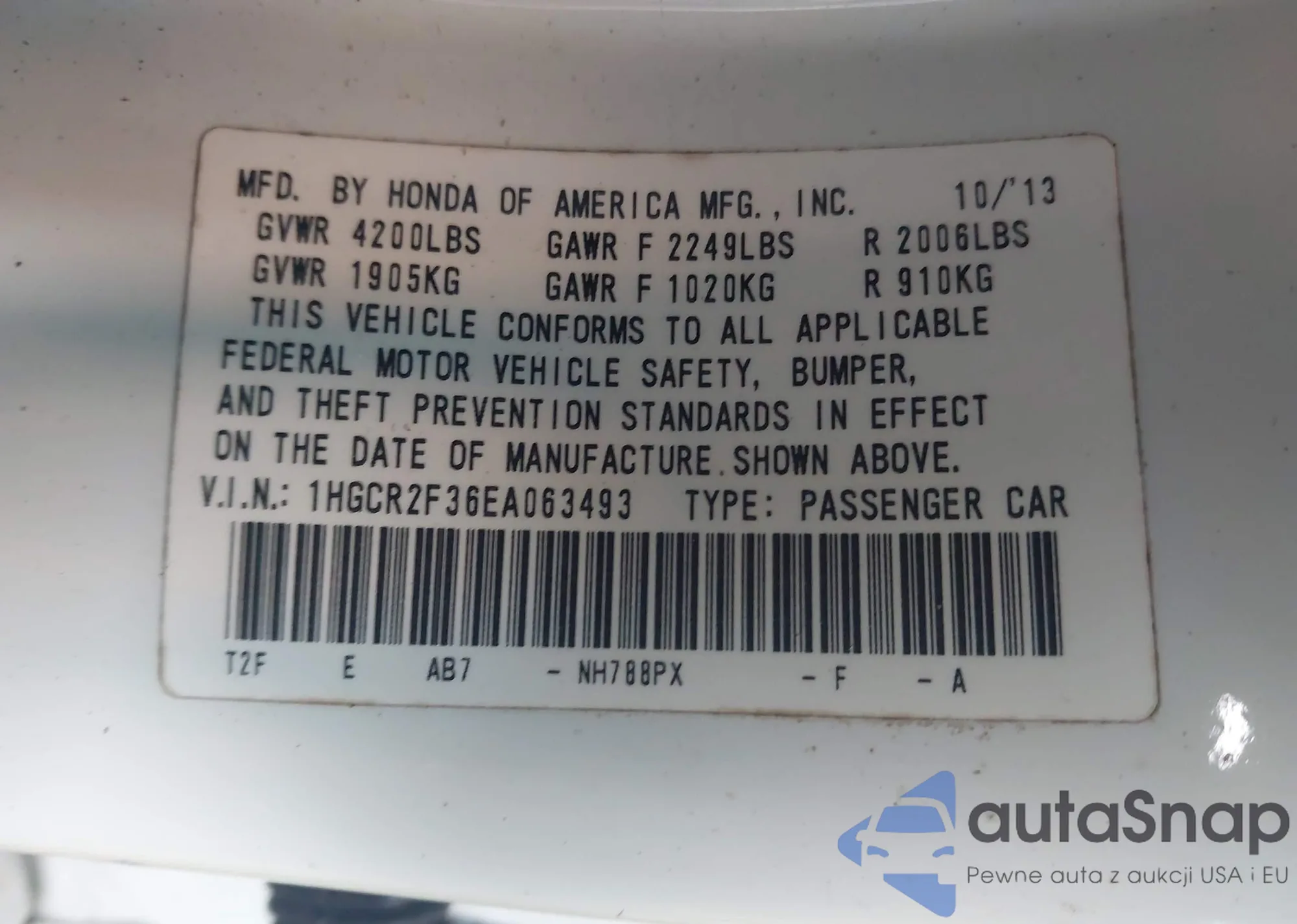 • VIN 1HGCR2F36EA063493
