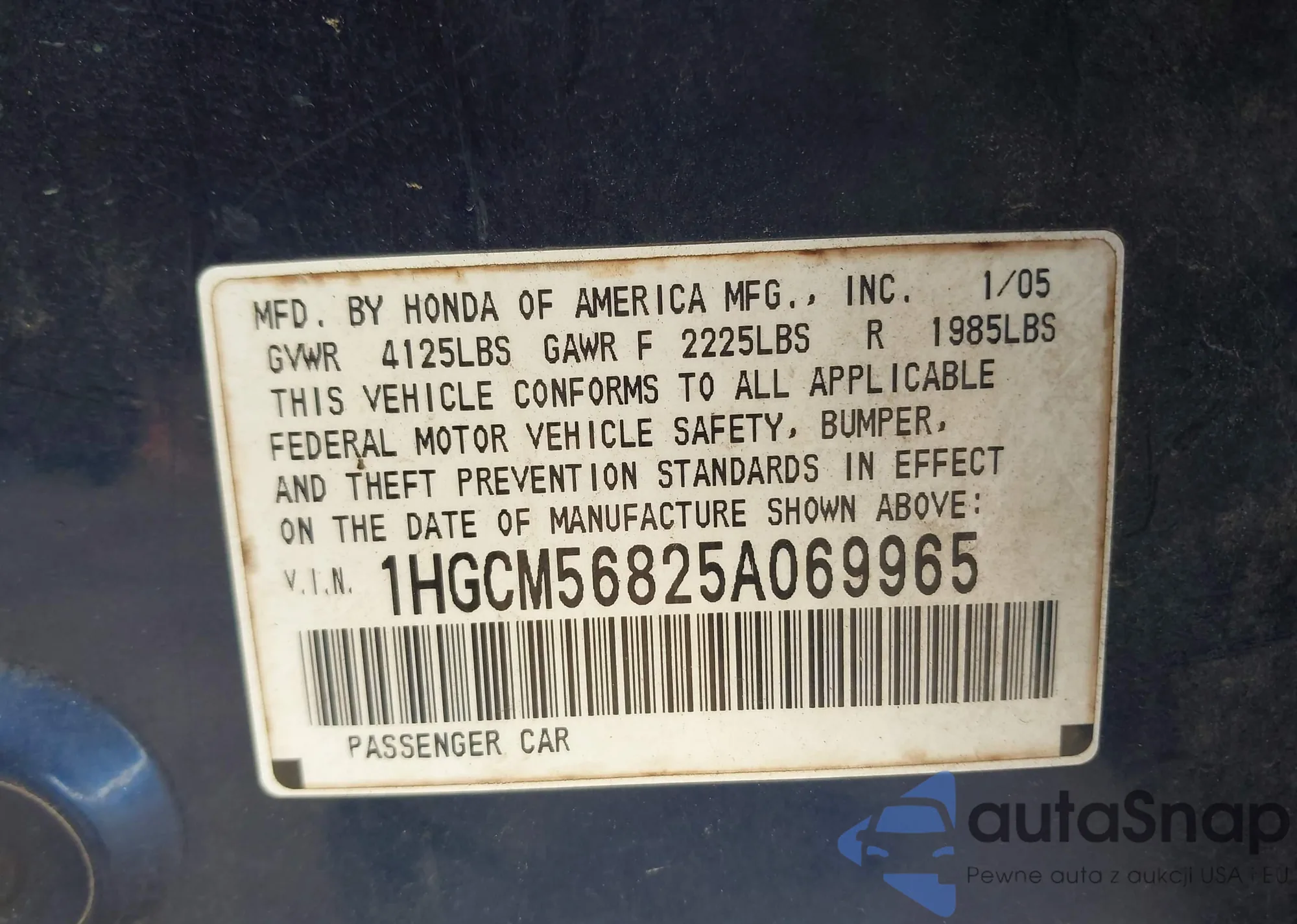 • VIN 1HGCM56825A069965