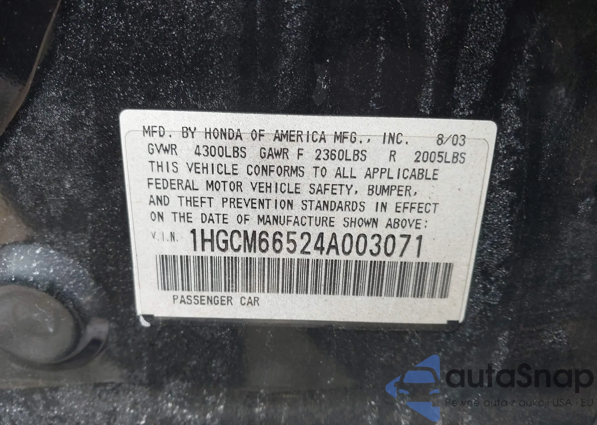 • VIN 1HGCM66524A003071