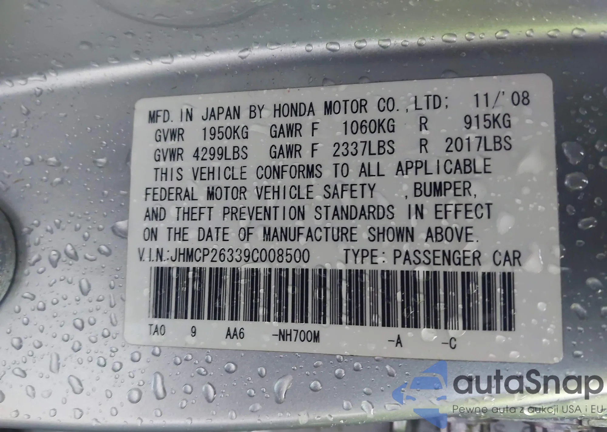 • VIN JHMCP26339C008500