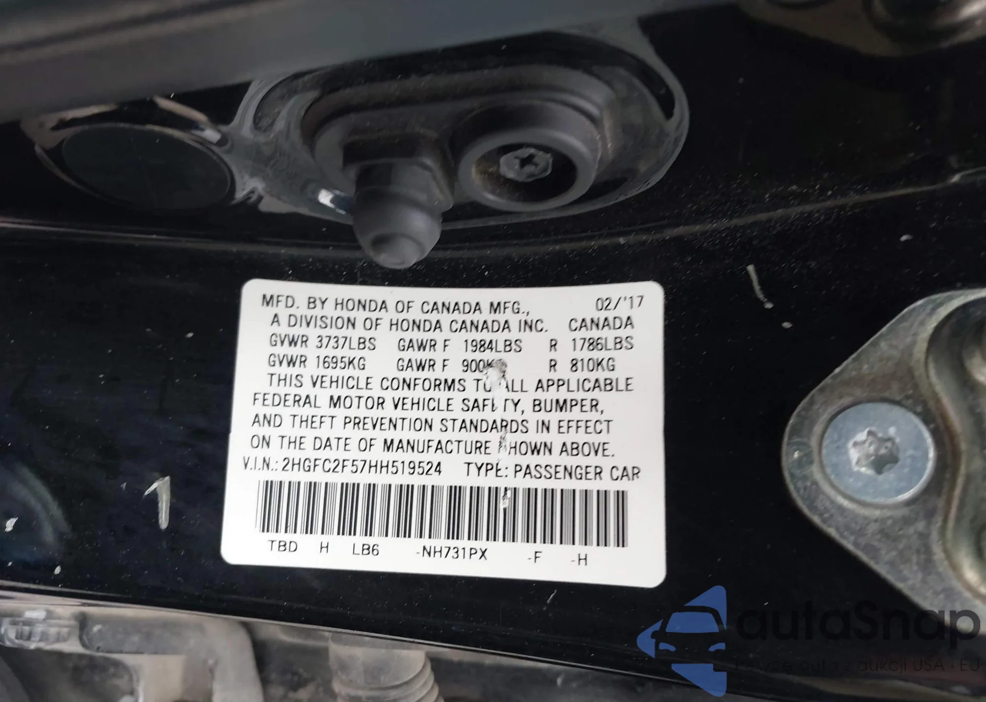 • VIN 2HGFC2F57HH519524