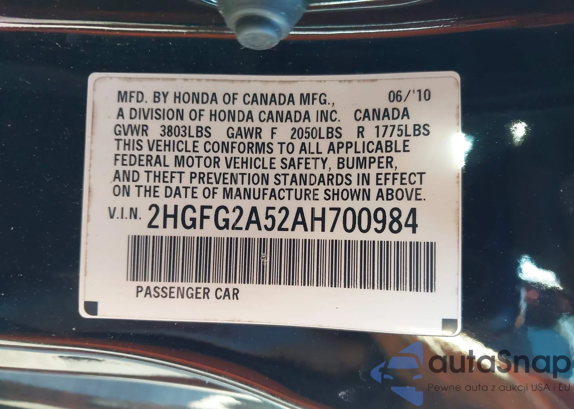 LOT: 44195838 VIN: 2HGFG2A52AH700984