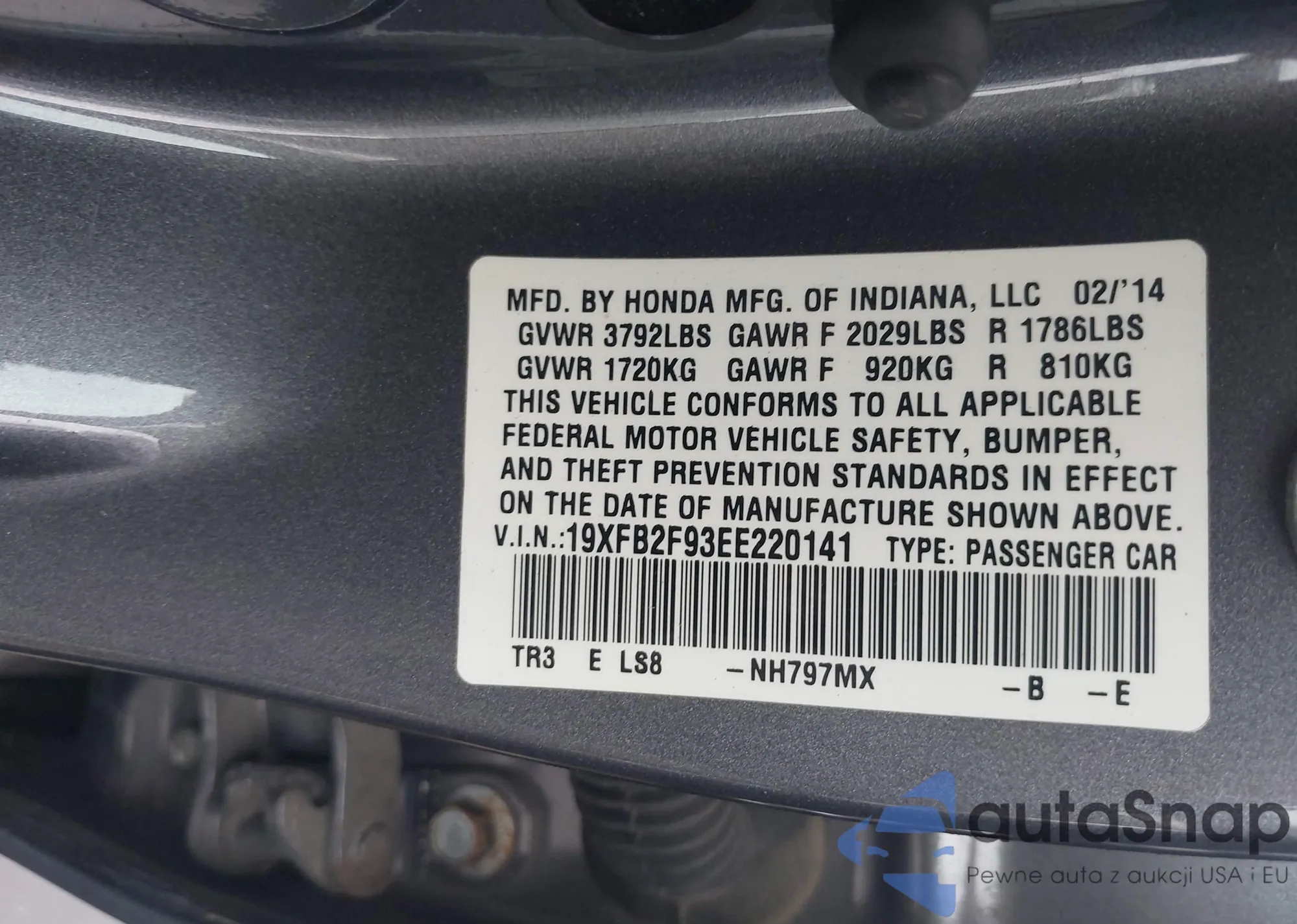 • VIN 19XFB2F93EE220141