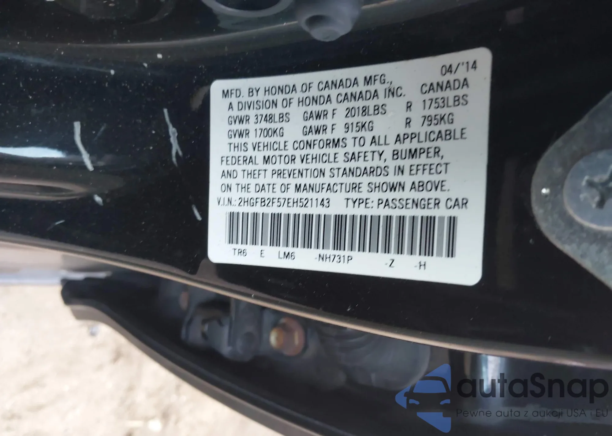 • VIN 2HGFB2F57EH521143