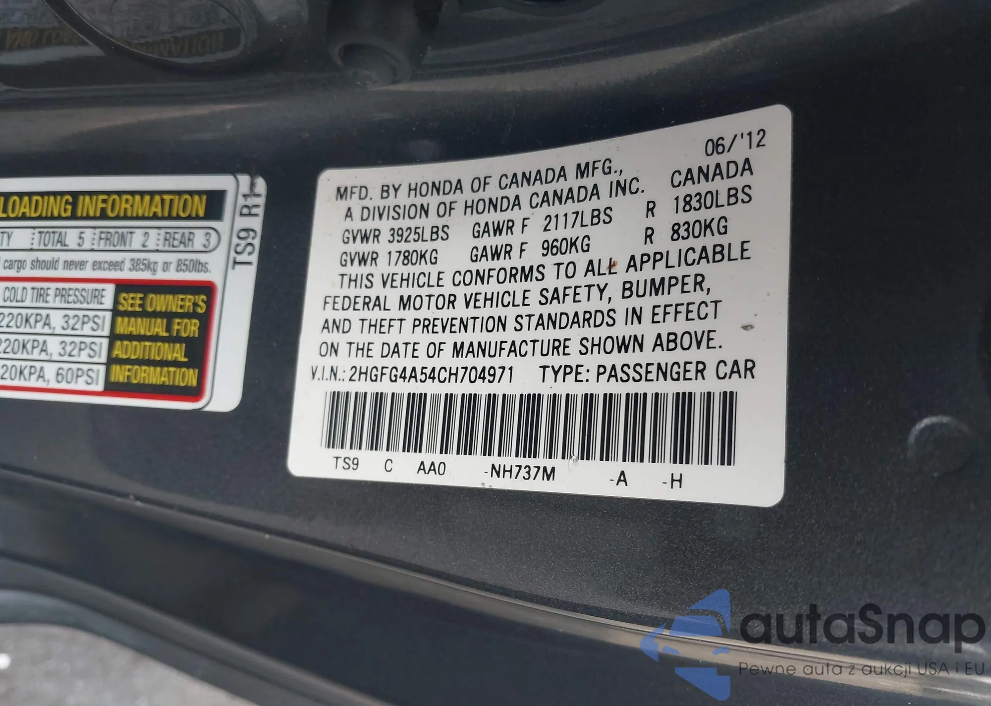 • VIN 2HGFG4A54CH704971