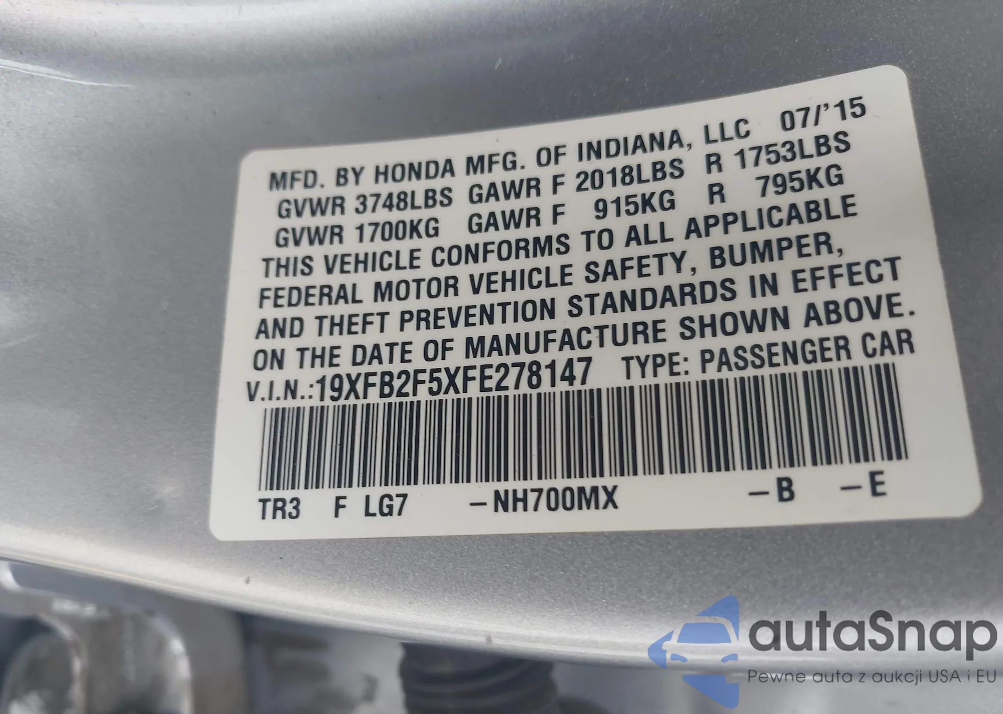 • VIN 19XFB2F5XFE278147