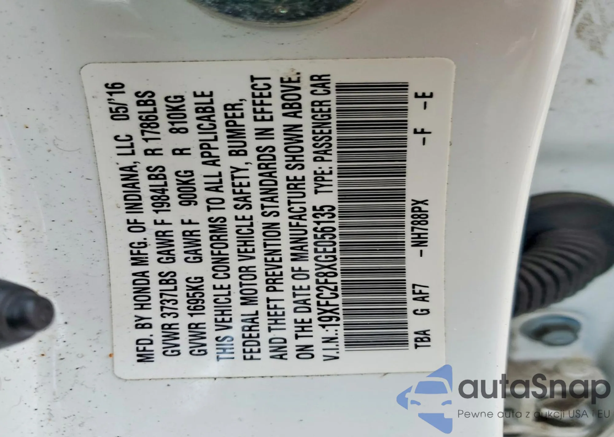 LOT: 74239895 VIN: 19XFC2F8XGE056135