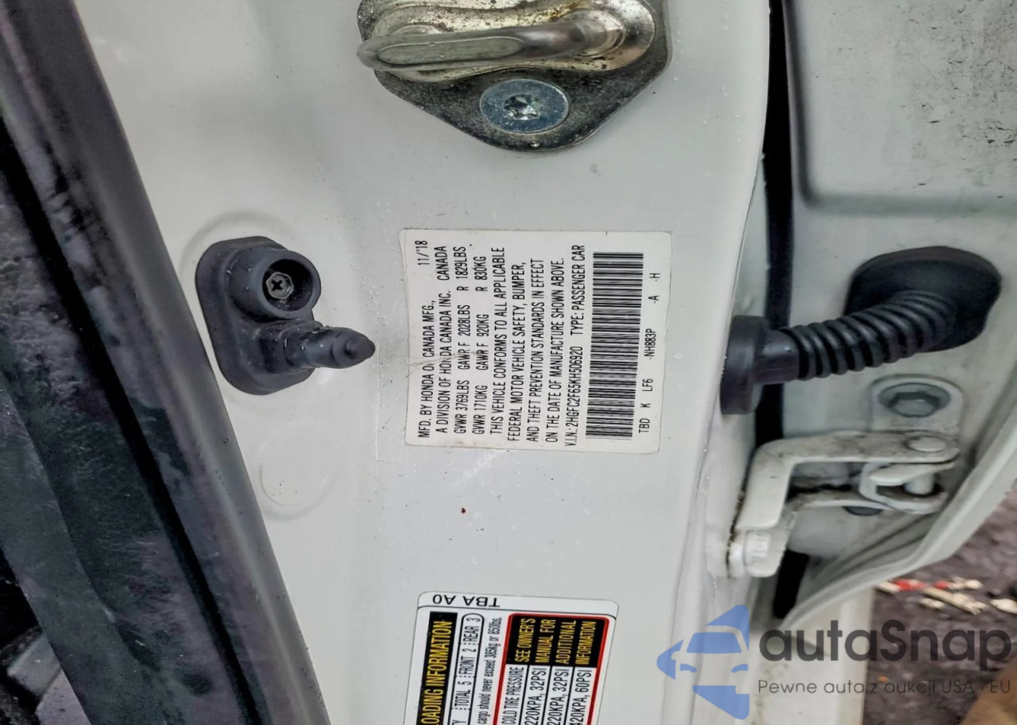 • VIN 2HGFC2F65KH506920