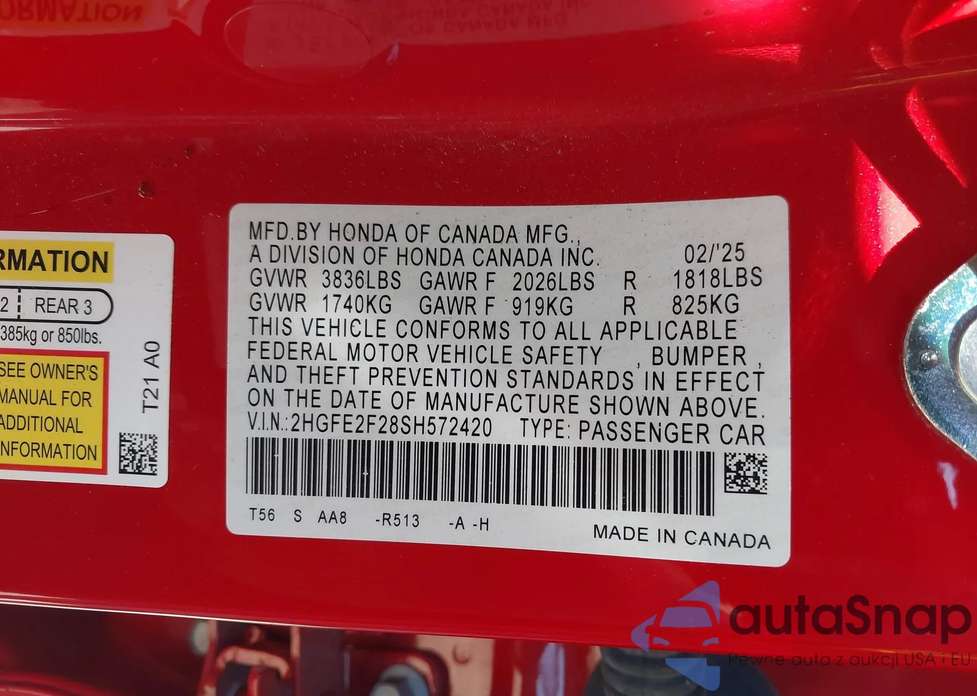 • VIN 2HGFE2F28SH572420