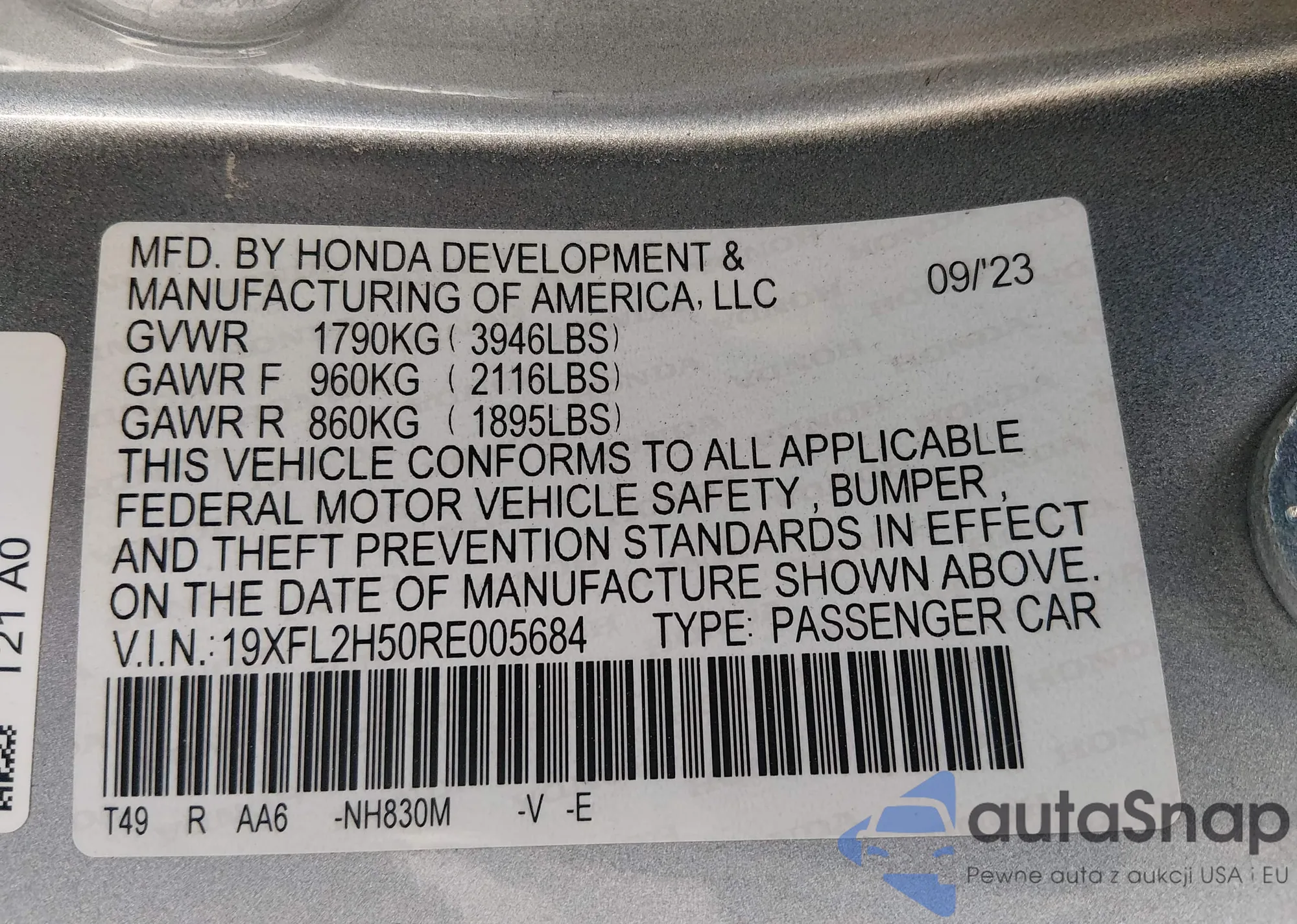• VIN 19XFL2H50RE005684