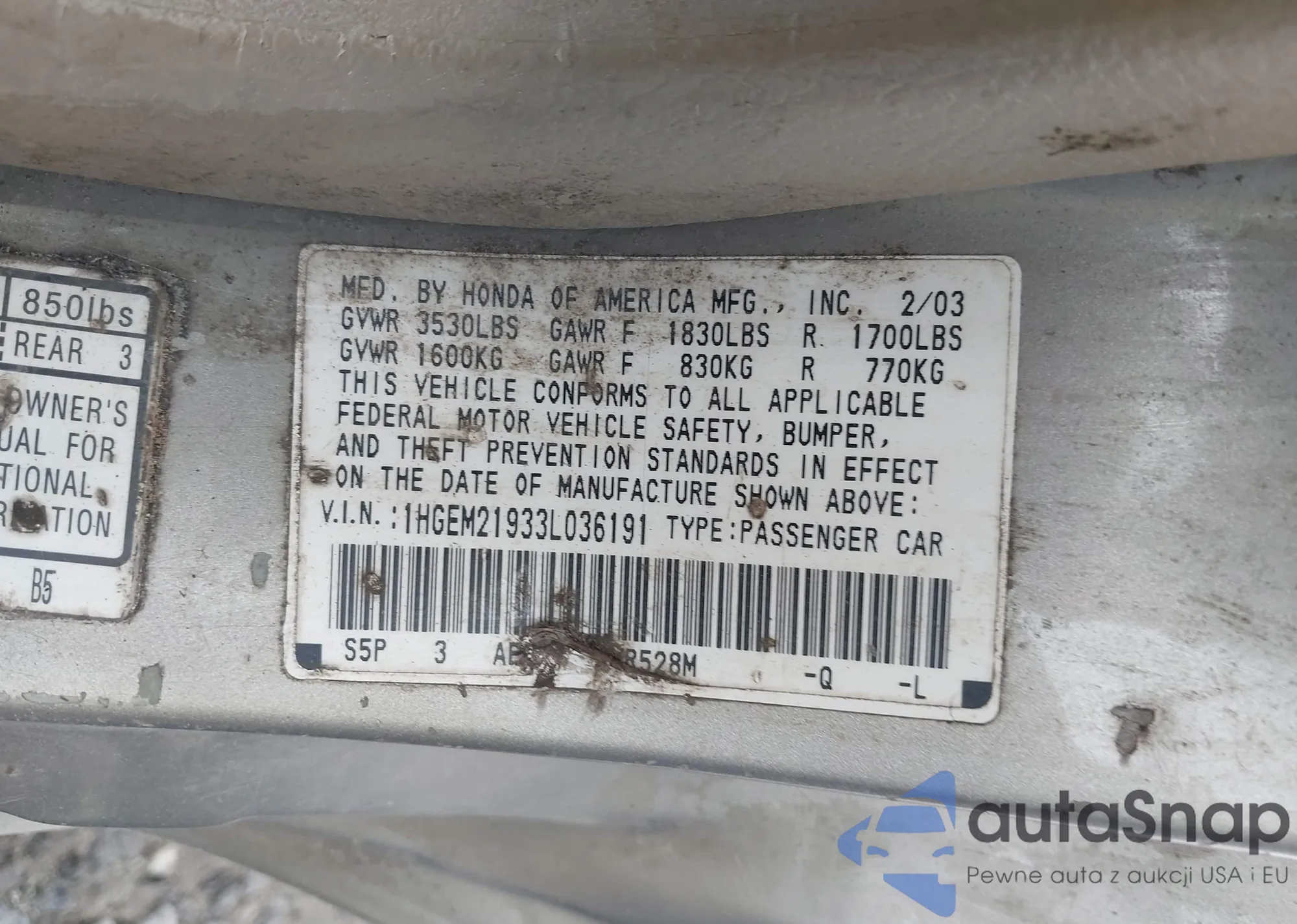 LOT: 44355393 VIN: 1HGEM21933L036191