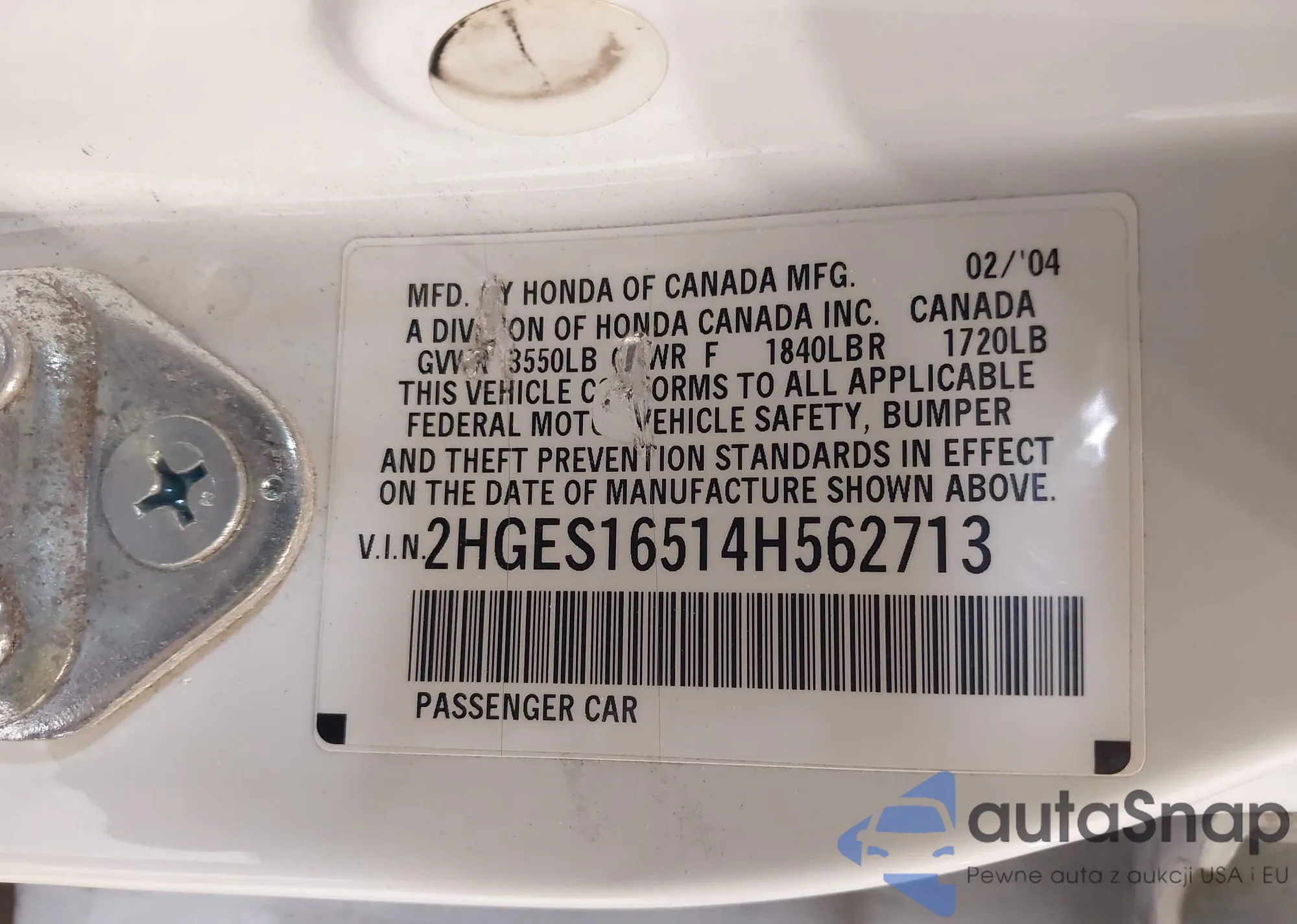 LOT: 44423998 VIN: 1HGEM21984L024166