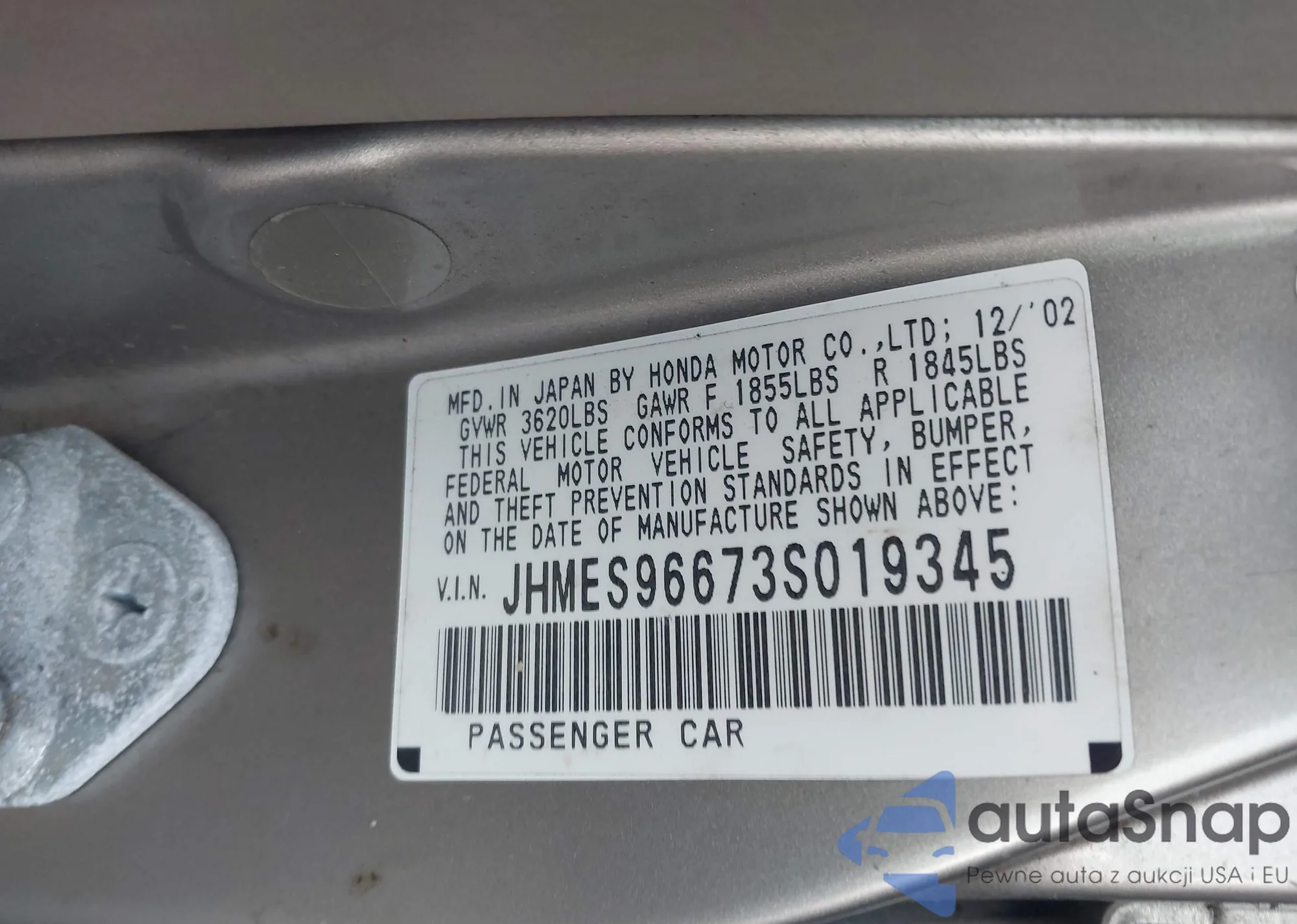 LOT: 44425549 VIN: JHMES96673S019345