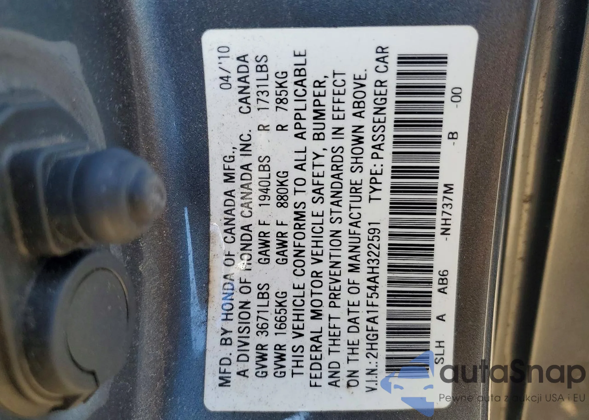 • VIN 2HGFA1F54AH322591