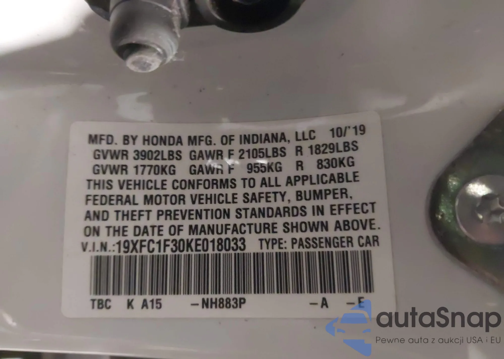 • VIN 19XFC1F30KE018033