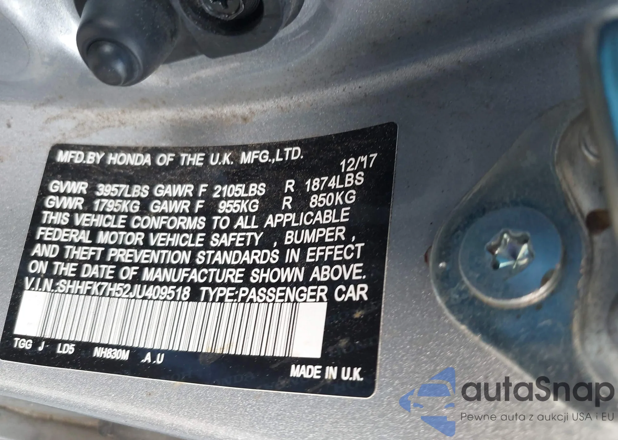 • VIN SHHFK7H52JU409518