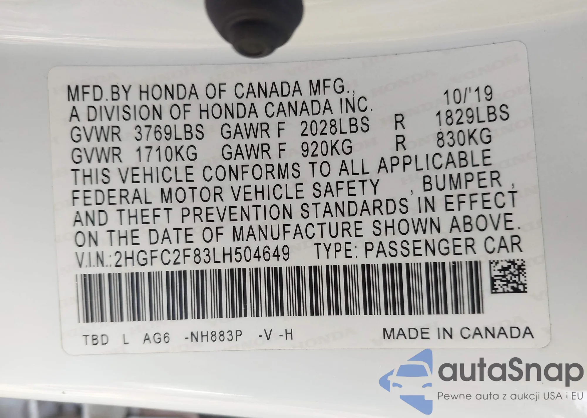 • VIN 2HGFC2F83LH504649