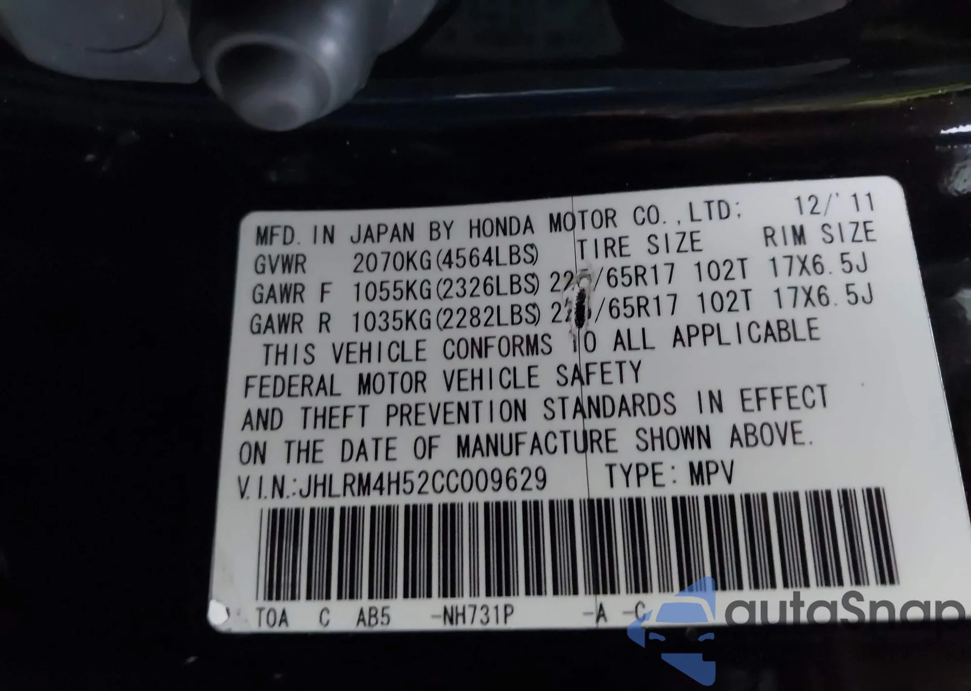 • VIN JHLRM4H52CC009629