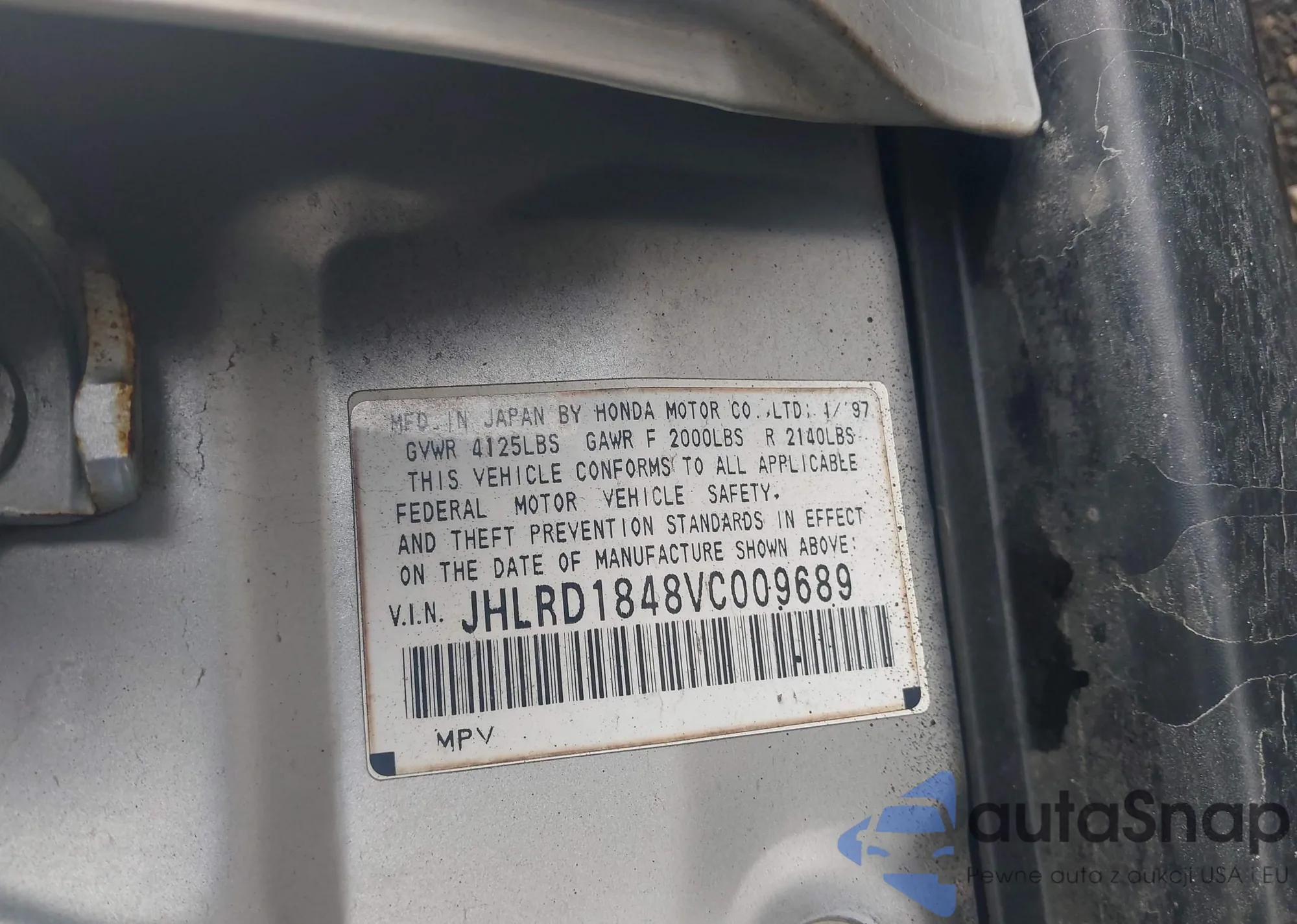 • VIN JHLRD1848VC009689