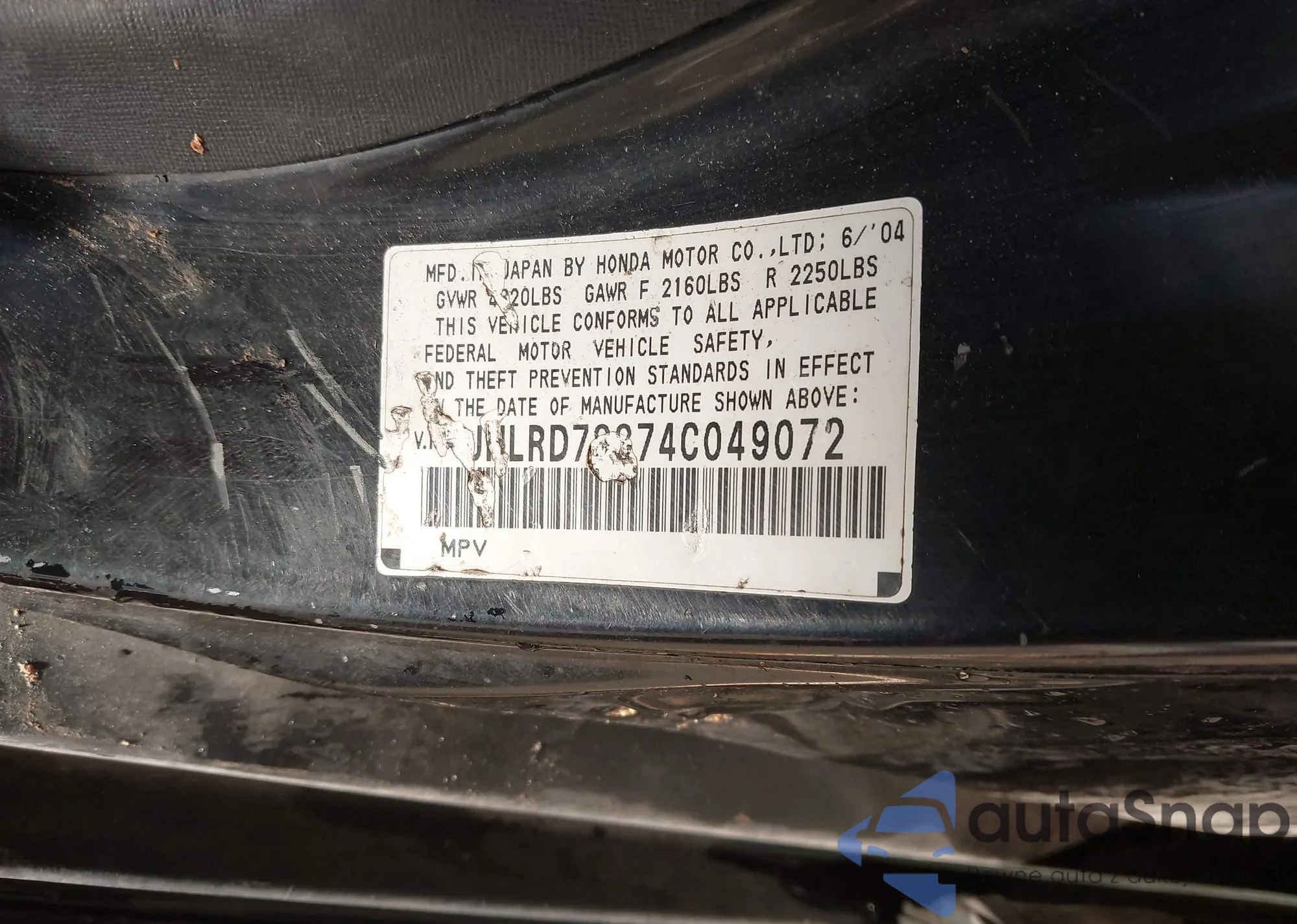 LOT: 44396304 VIN: JHLRD78874C049072