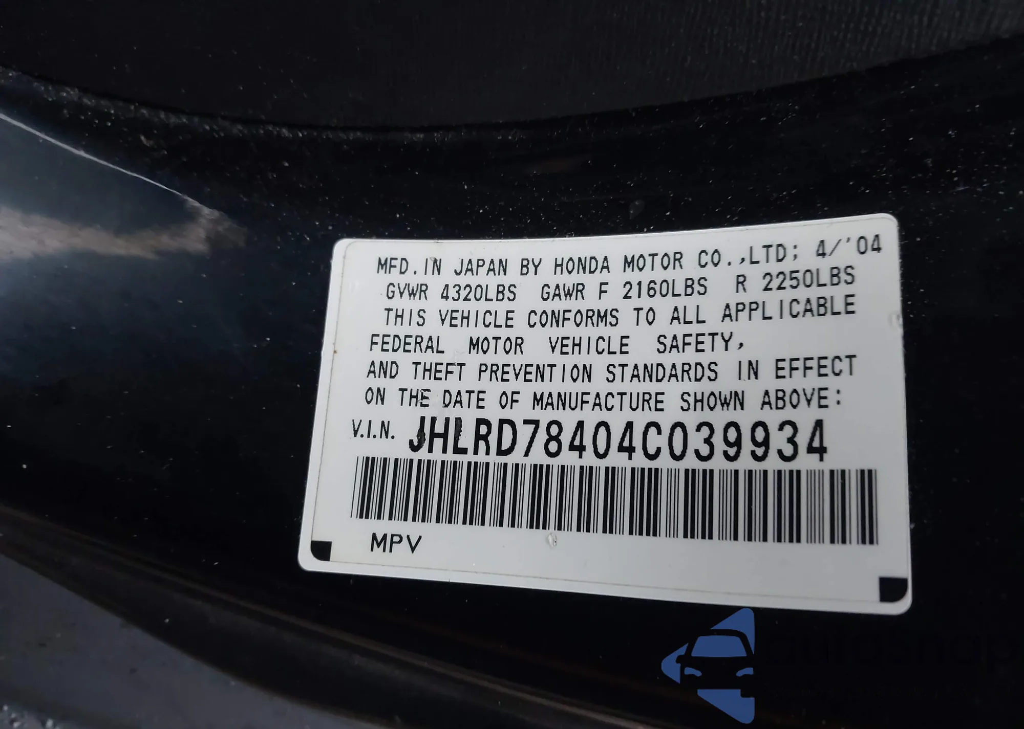• VIN JHLRD78404C039934