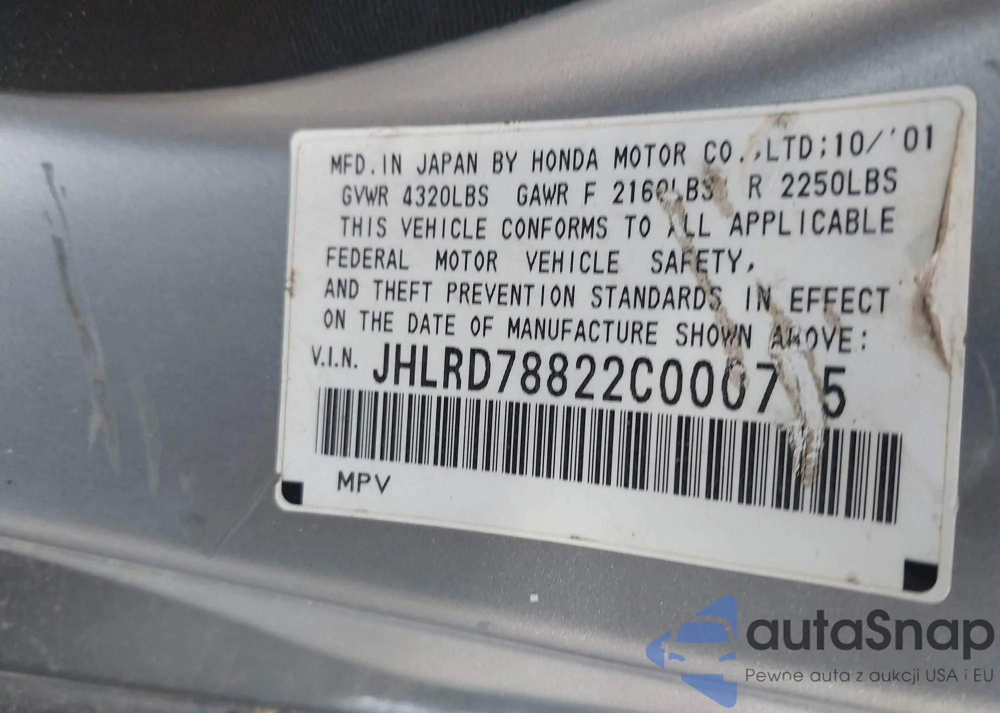 • VIN JHLRD78822C000715