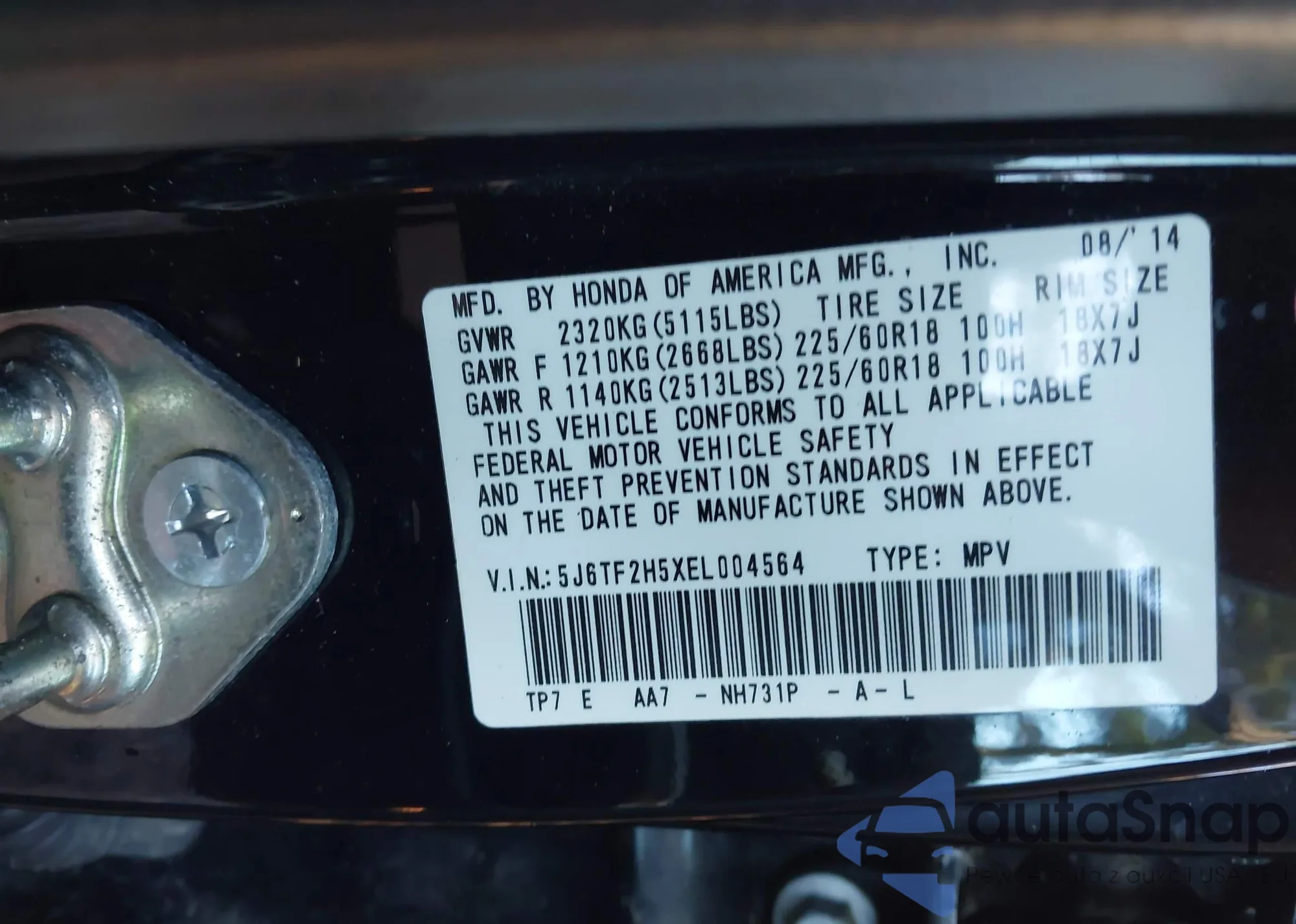 • VIN 5J6TF2H5XEL004564