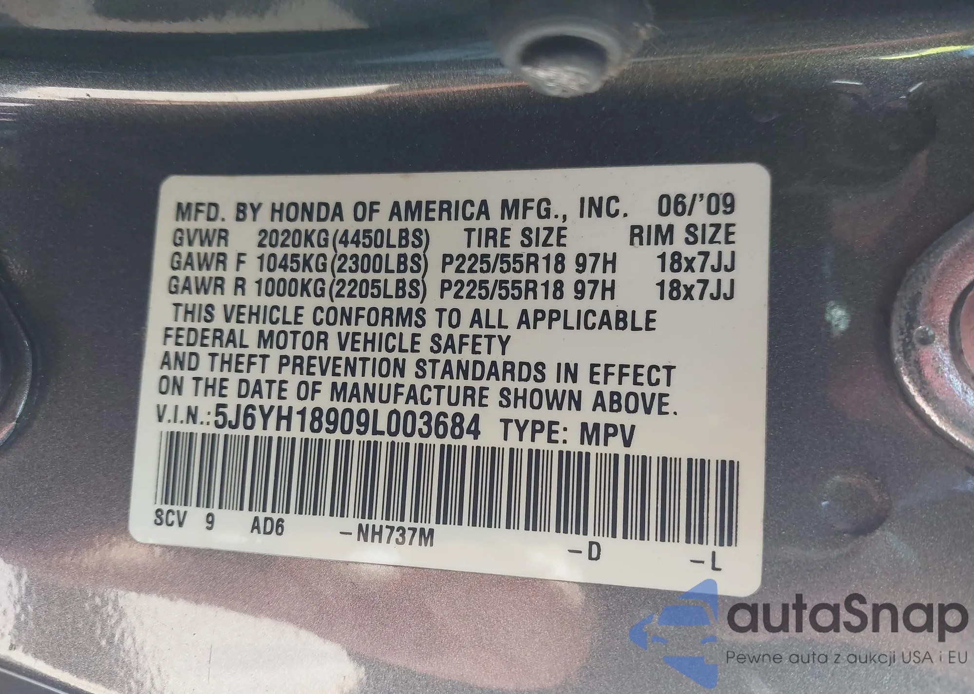 • VIN 5J6YH18909L003684