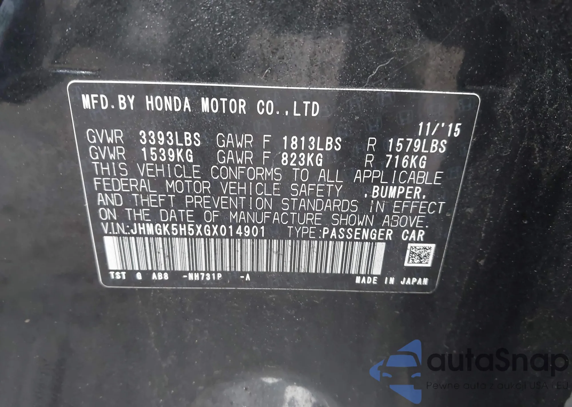 • VIN JHMGK5H5XGX014901