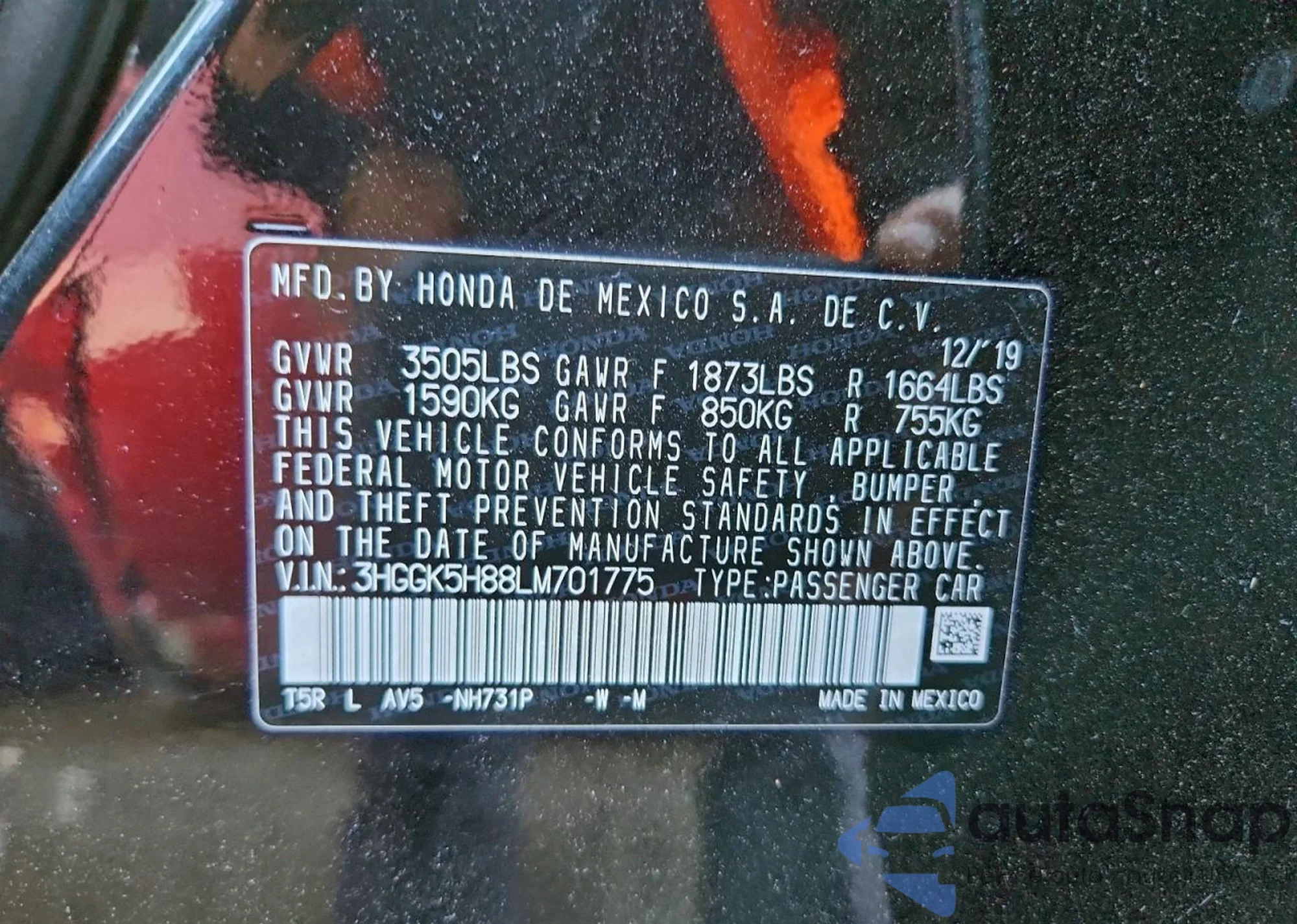 • VIN 3HGGK5H88LM701775