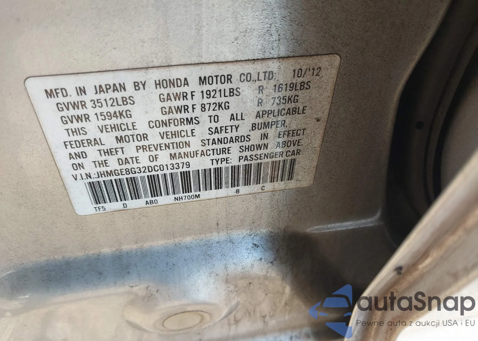 • VIN JHMGE8G32DC013379
