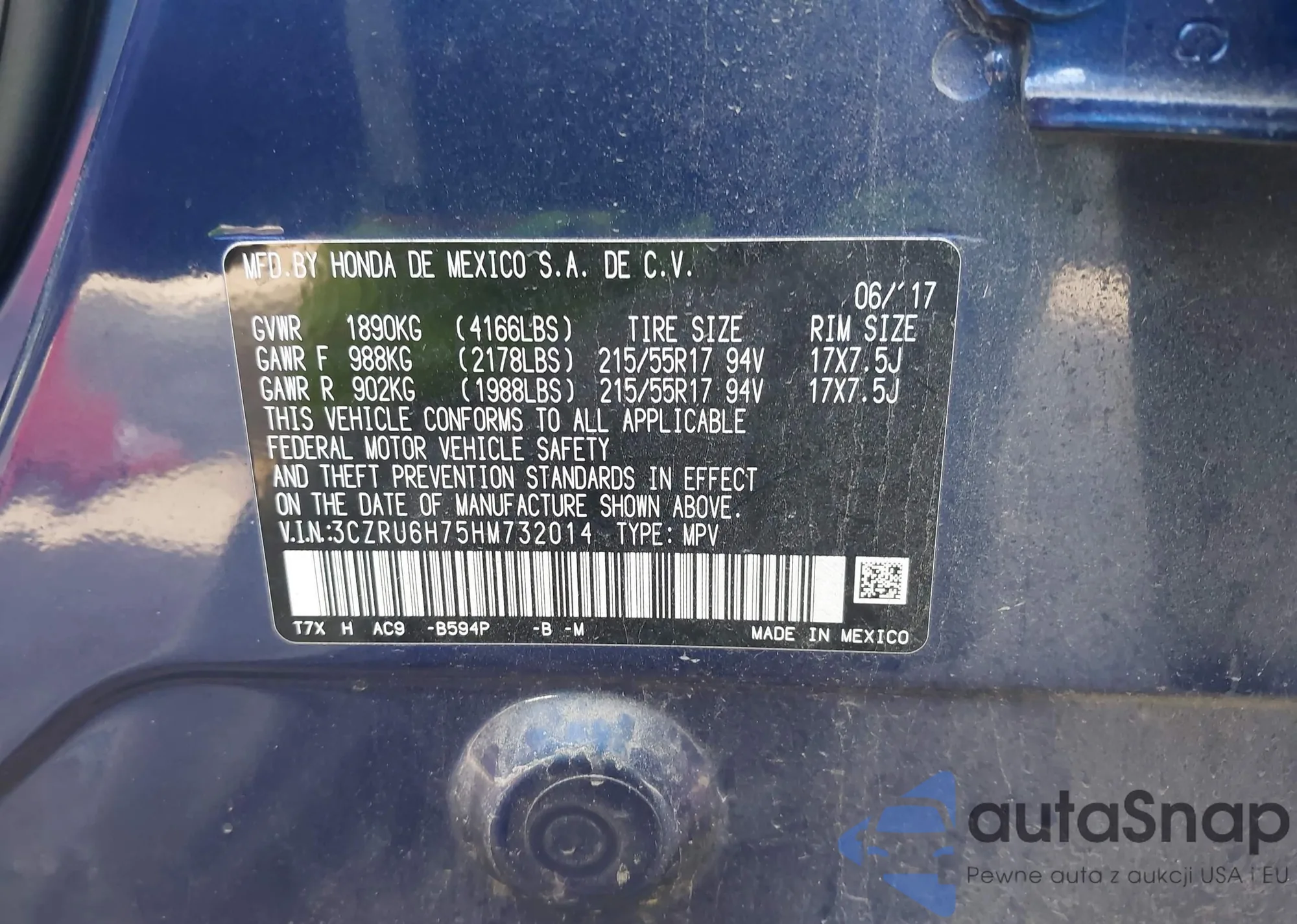 • VIN 3CZRU6H15MM732665