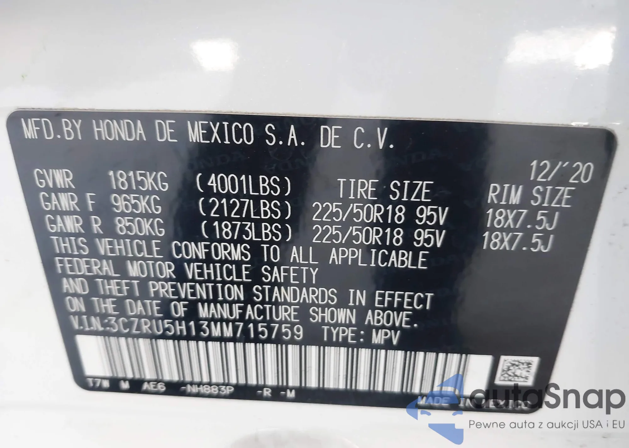• VIN 3CZRU5H13MM715759