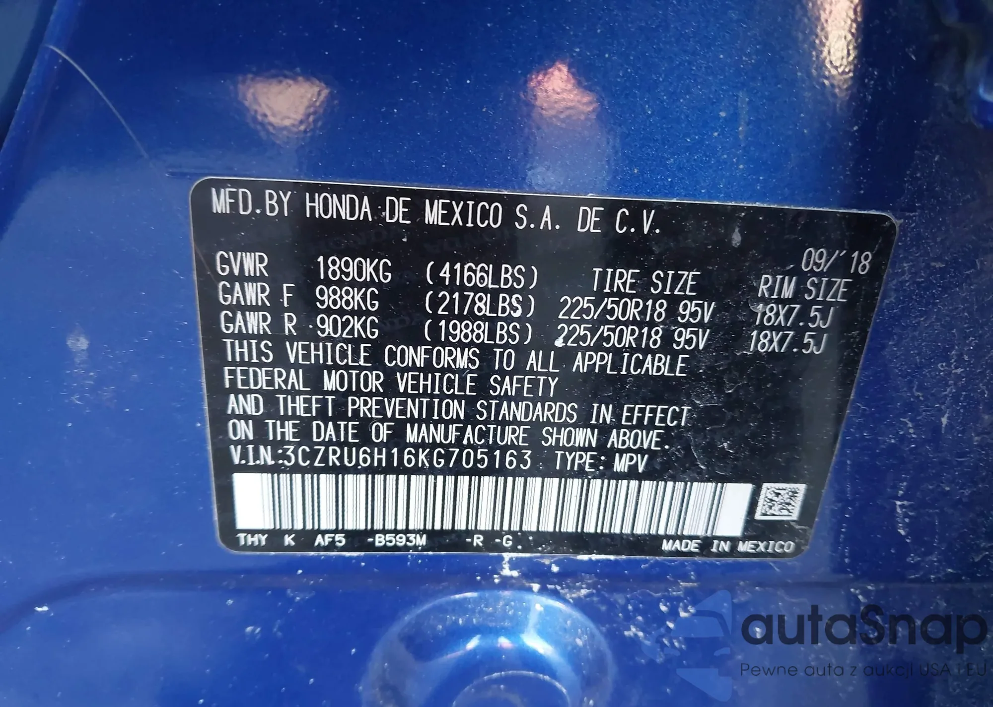 • VIN 3CZRU6H16KG705163