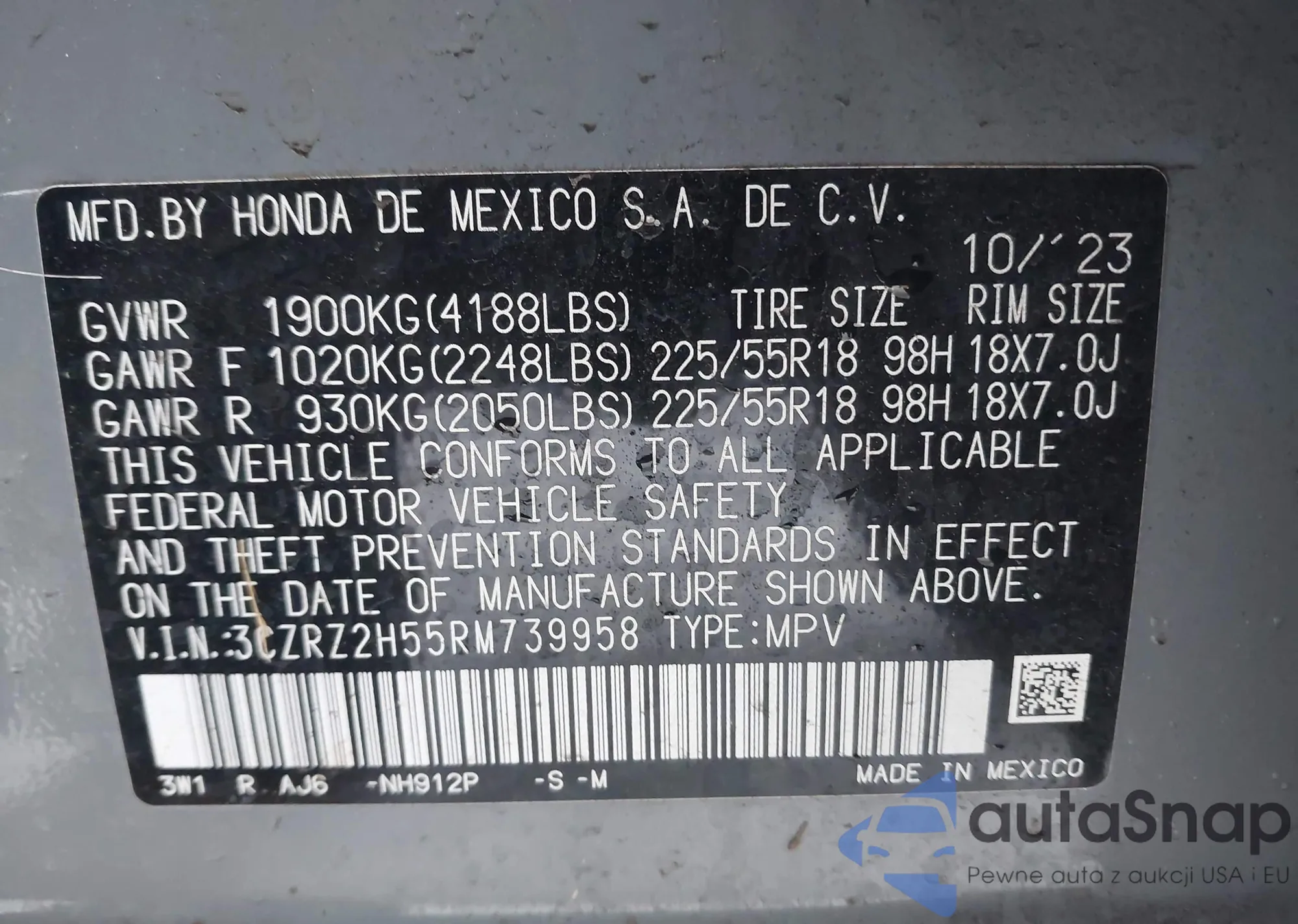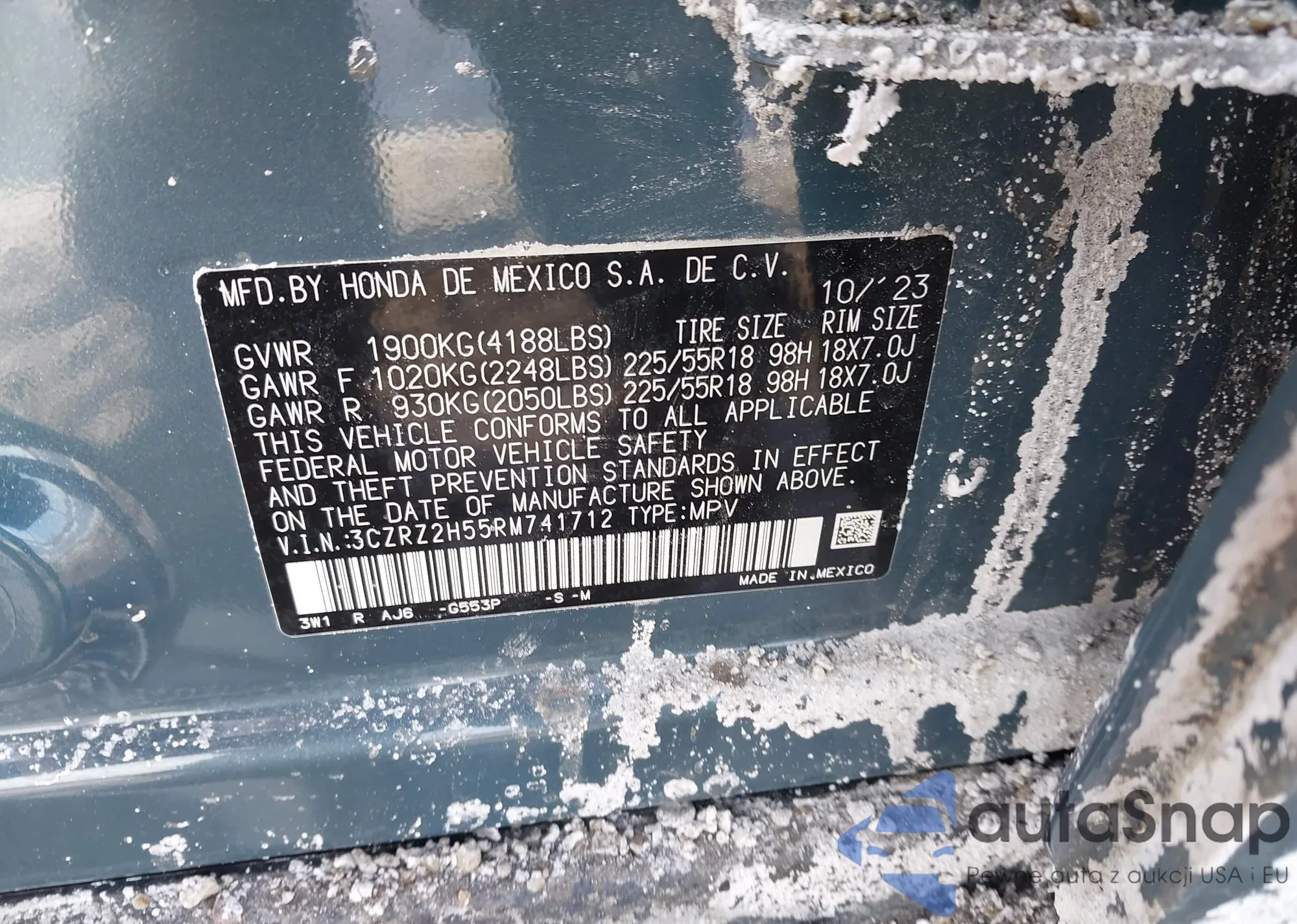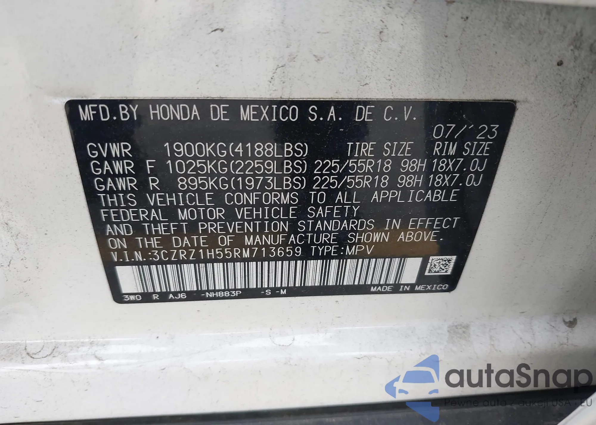 • VIN 3CZRZ1H51PM713736