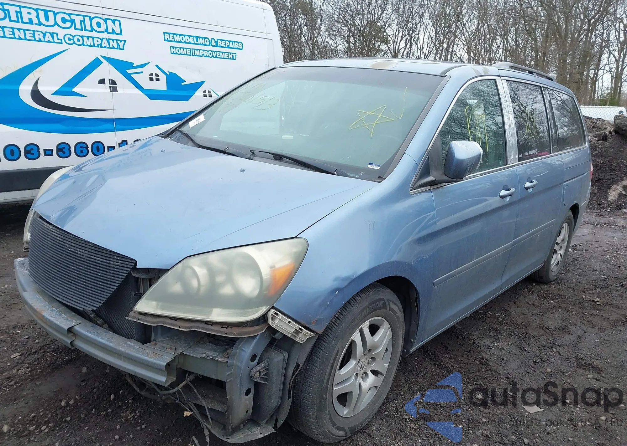 2005 Honda Odyssey Ex z USA, uszkodzony, nr VIN 5FNRL38405B075846